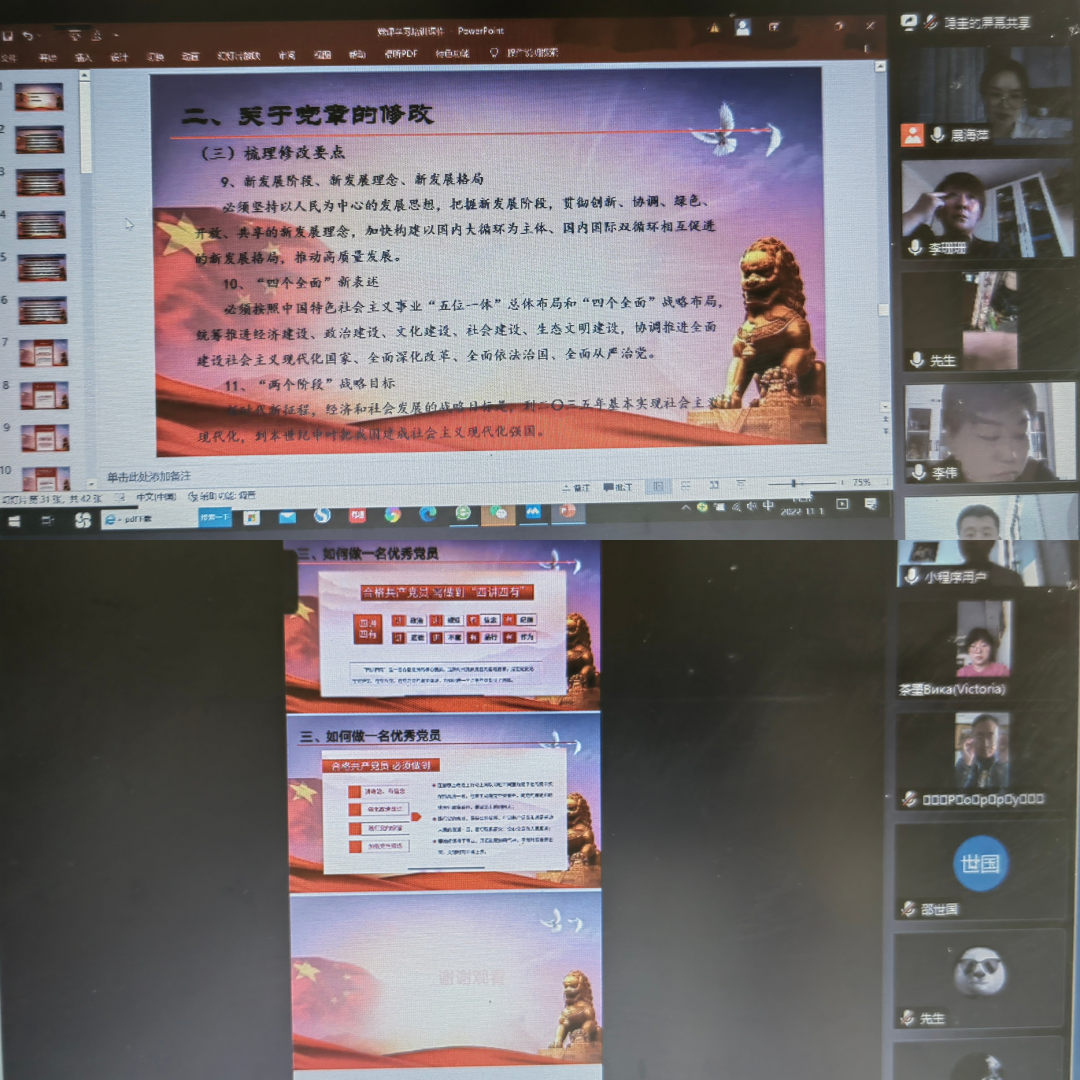 近日,新絲路公司黨支部線上開展了“黨的二十大報(bào)告專題學(xué)習(xí)”主題黨日活動(dòng)和新黨章學(xué)習(xí)培訓(xùn),充分學(xué)習(xí)黨的二十大召開重要意義和會(huì)議精神,把全員思想和行動(dòng)統(tǒng)一到黨的二十大精神上,把黨的二十大精神貫徹落實(shí)到各項(xiàng)工作中,為保障新絲路公司全年任務(wù)目標(biāo)圓滿完成和推進(jìn)隴神戎發(fā)實(shí)現(xiàn)高質(zhì)量發(fā)展賦能。
