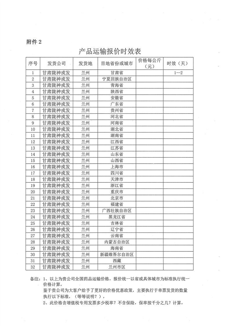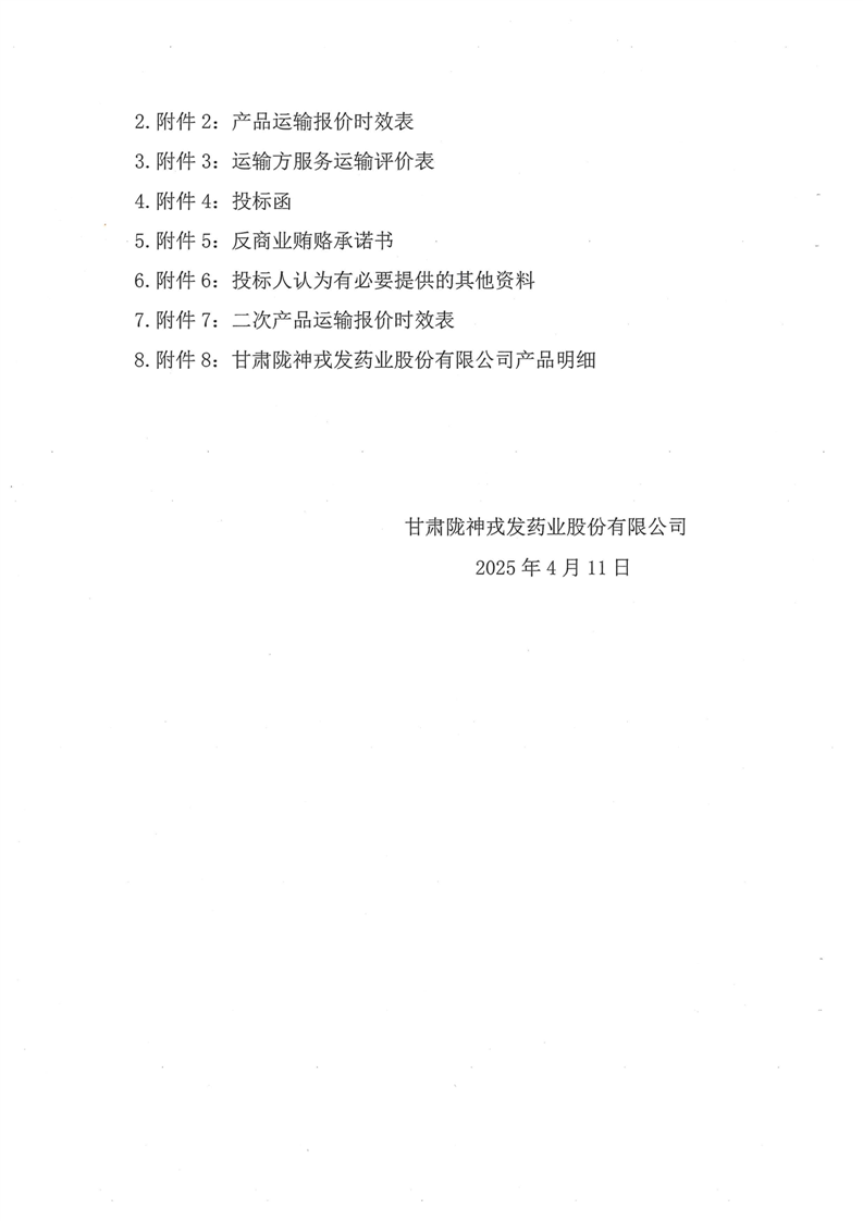 甘肅隴神戎發(fā)藥業(yè)股份有限公司物流運輸招標公告