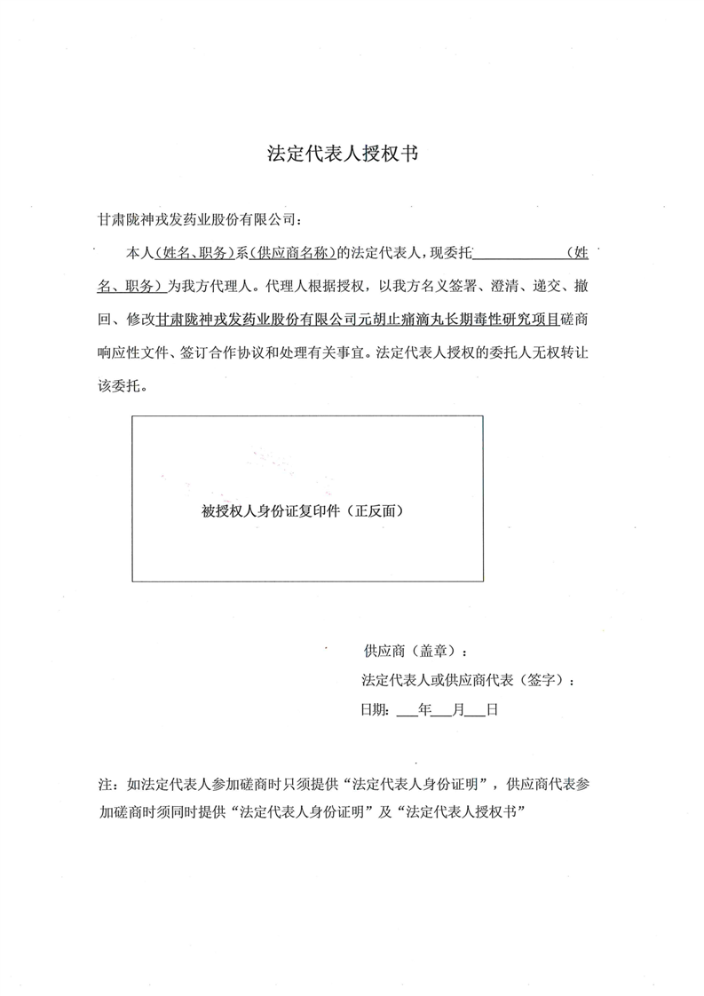甘肅隴神戎發藥業股份有限公司元胡止痛滴丸長期毒性研究項目競爭性磋商公告