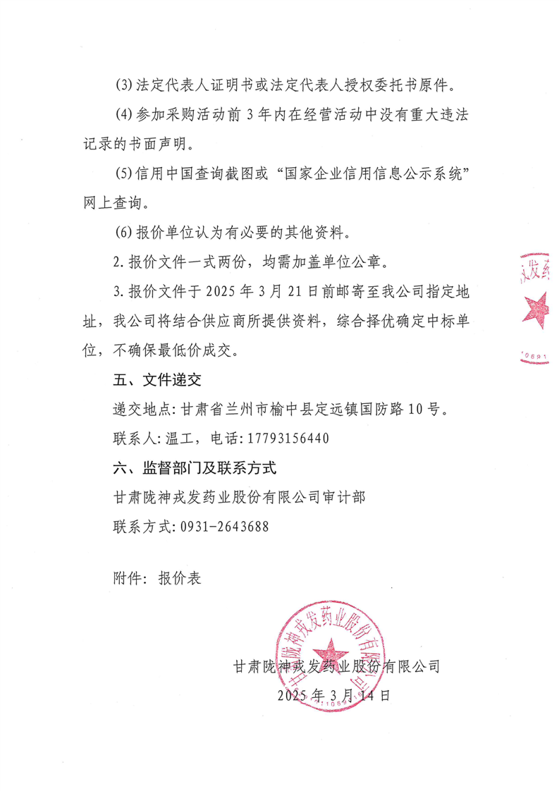 關于甘肅隴神戎發藥業股份有限公司固體制劑設備升級改造項目節能評估備案及能耗說明報告編制詢比采購公告