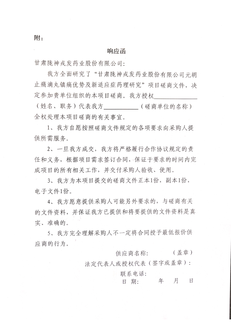 甘肅隴神戎發藥業股份有限公司元胡止痛滴丸鎮痛優勢及新適應癥藥理研究項目競爭性磋商公告