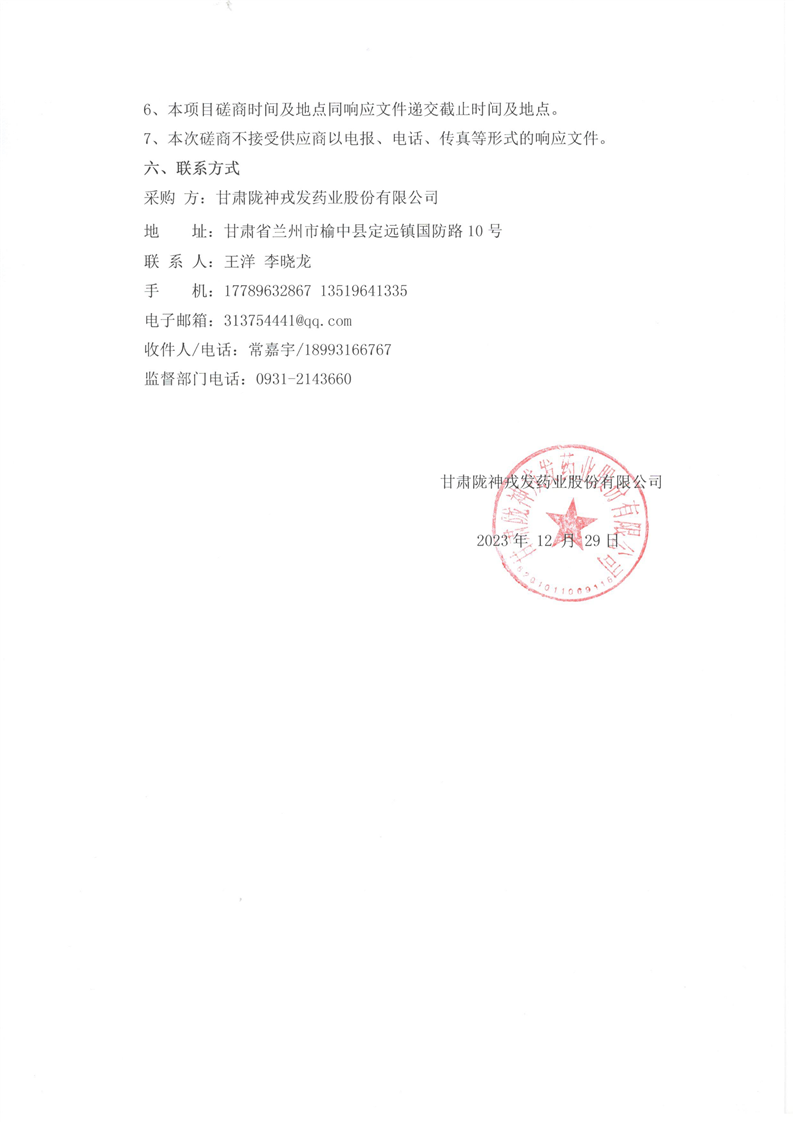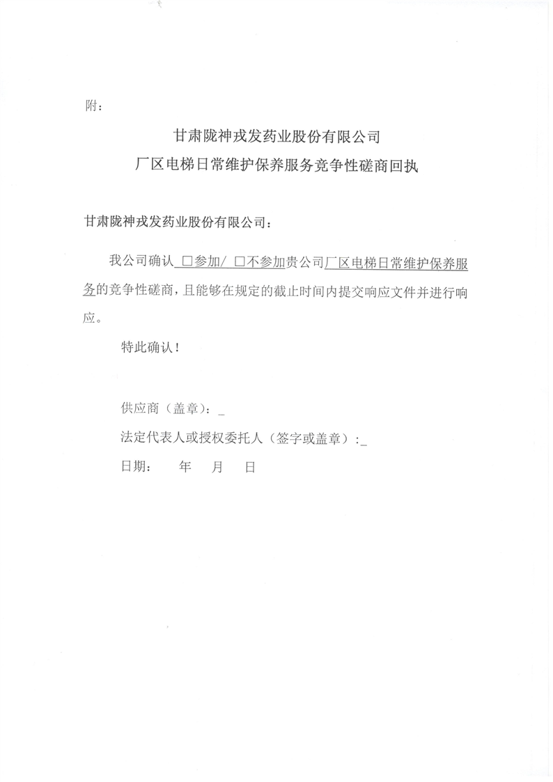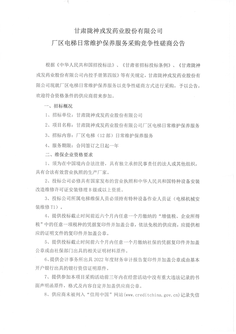 甘肅隴神戎發藥業股份有限公司廠區電梯日常維護保養服務采購競爭性磋商公告