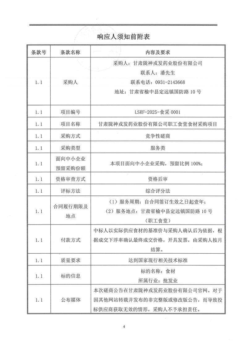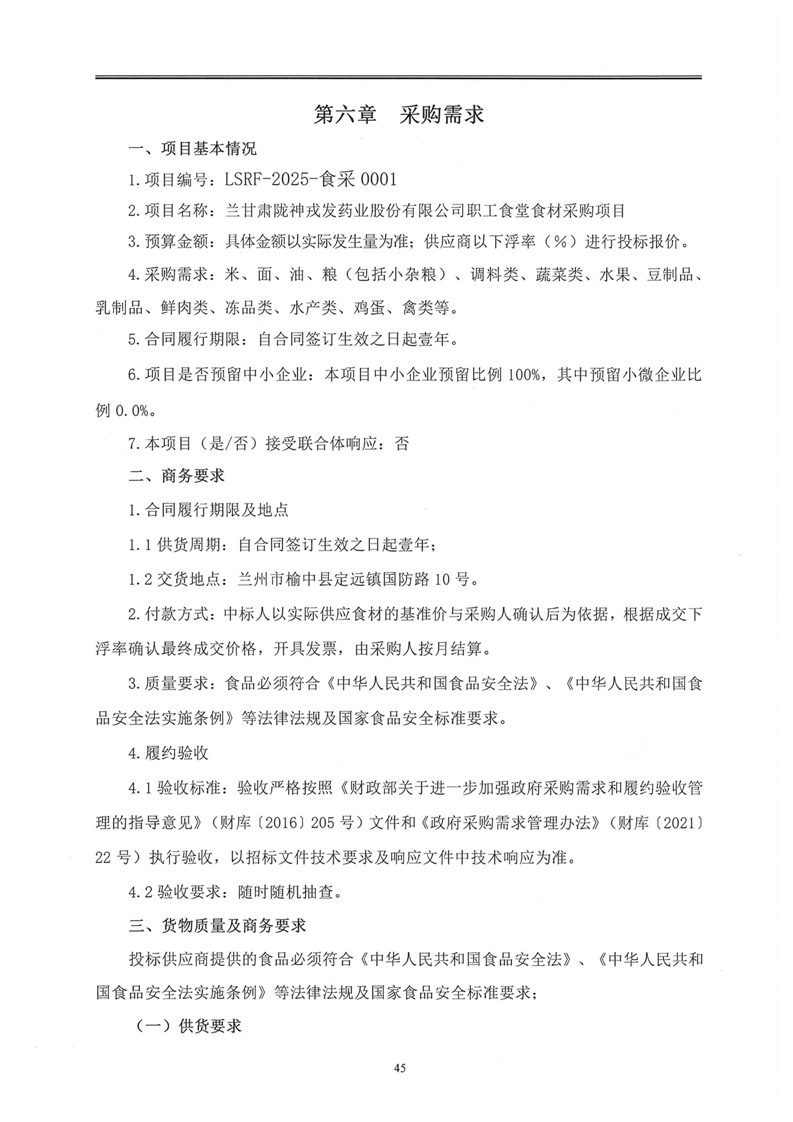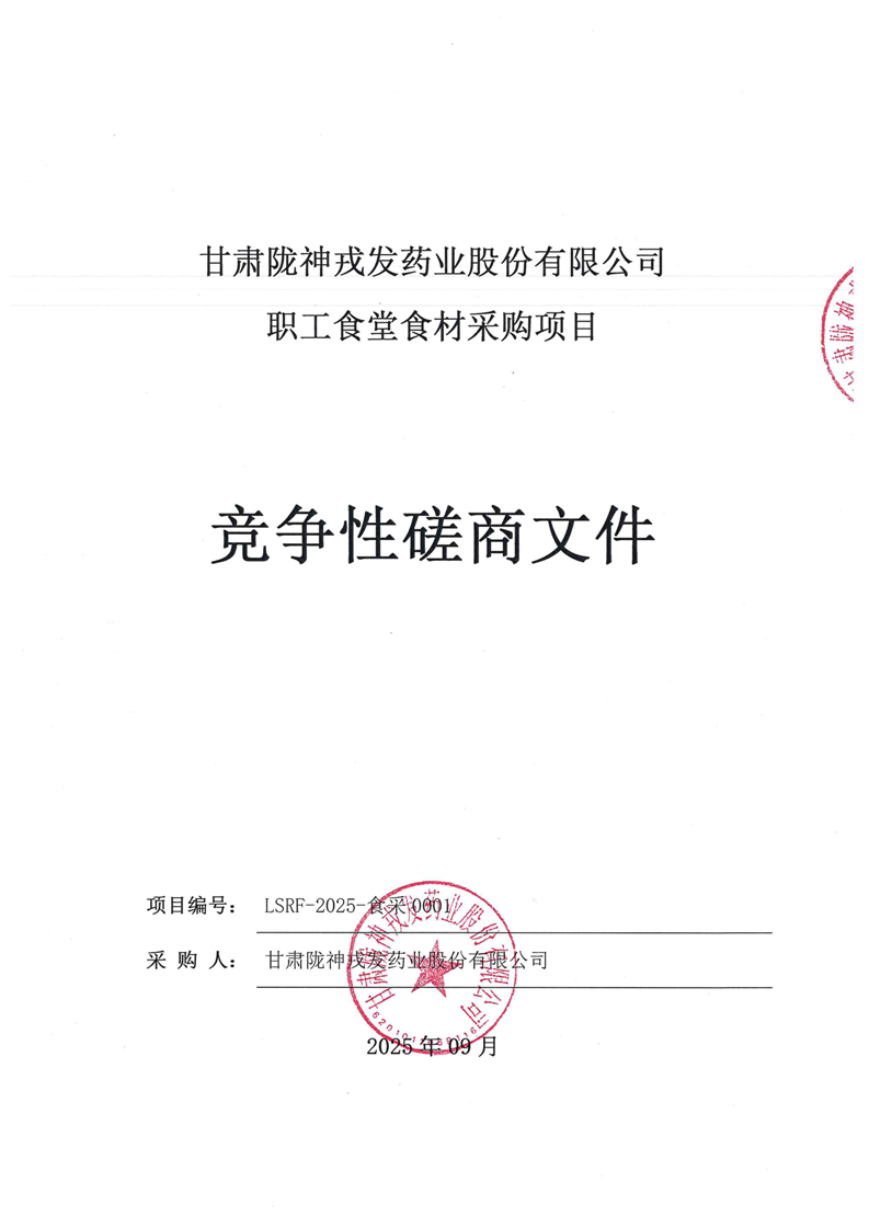 甘肅隴神戎發藥業股份有限公司職工食堂食材采購項目競爭性磋商文件