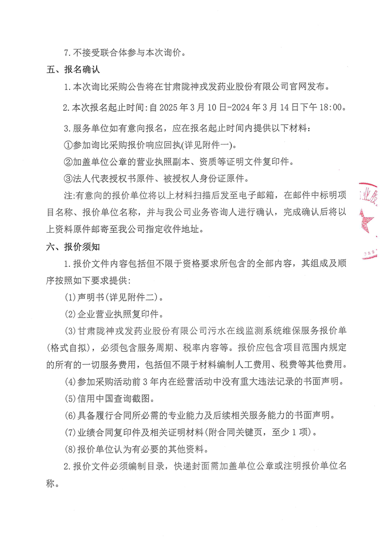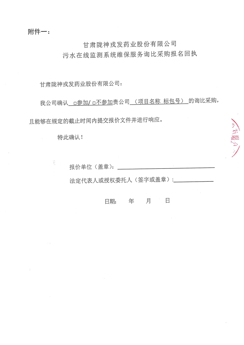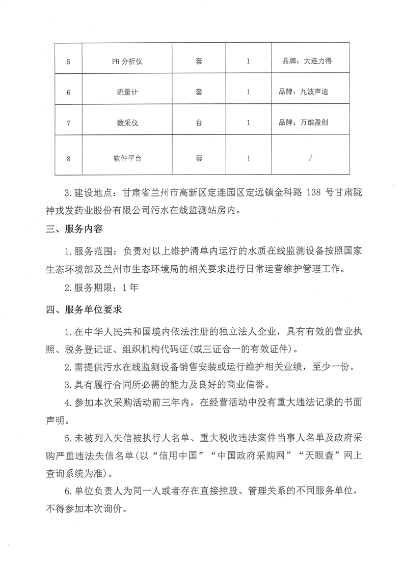 甘肅隴神戎發藥業股份有限公司污水在線監測系統維保服務詢比采購公告