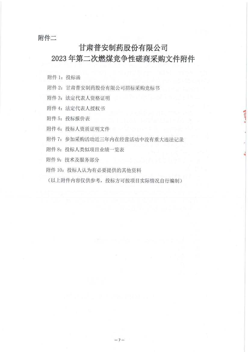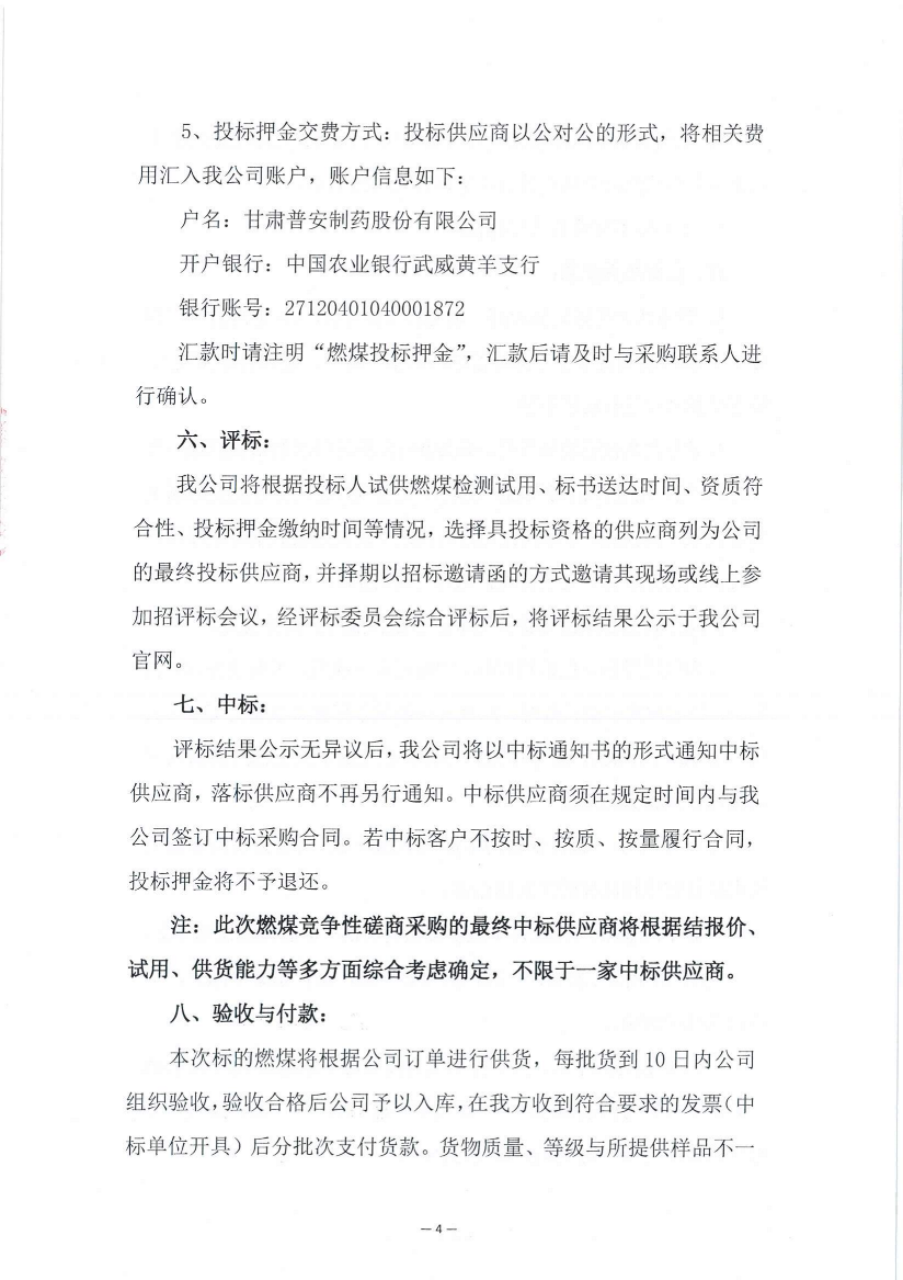 甘肅普安制藥股份有限公司2023年第二次燃煤采購競爭性磋商公告