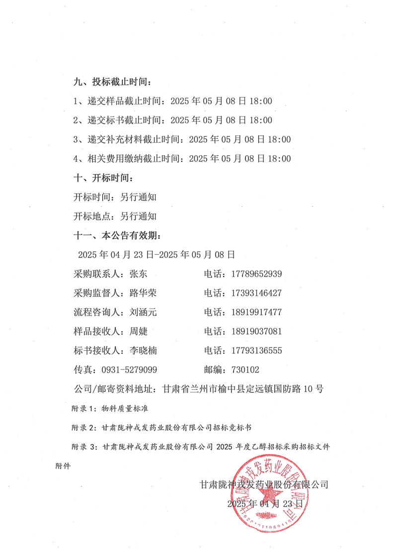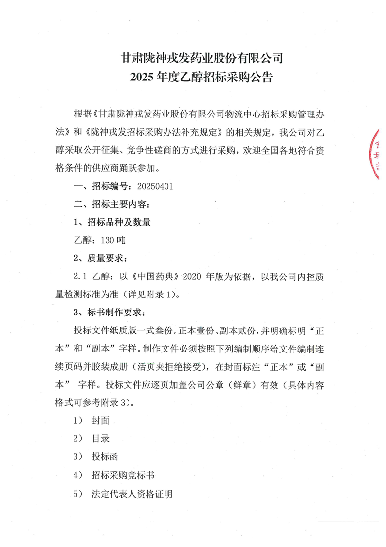 2025年度乙醇招標公告