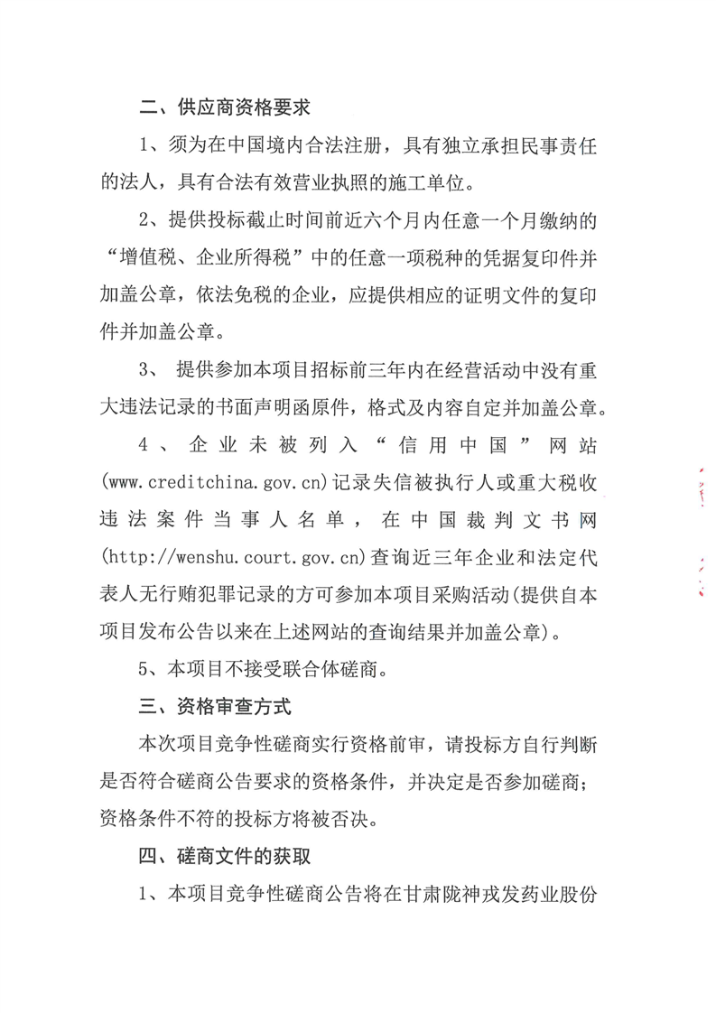 甘肅隴神戎發(fā)藥業(yè)股份有限公司年產(chǎn)200億粒現(xiàn)代中藥生產(chǎn)線擴(kuò)能改造項(xiàng)目(二期)原料及成品庫房建設(shè)項(xiàng)目——消防及安全設(shè)施升級(jí)改造工程(二標(biāo)段)第2次