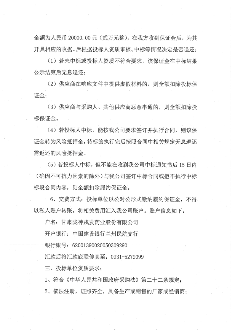 甘肅隴神戎發藥業股份有限公司2024年12月中藥材招標采購公告