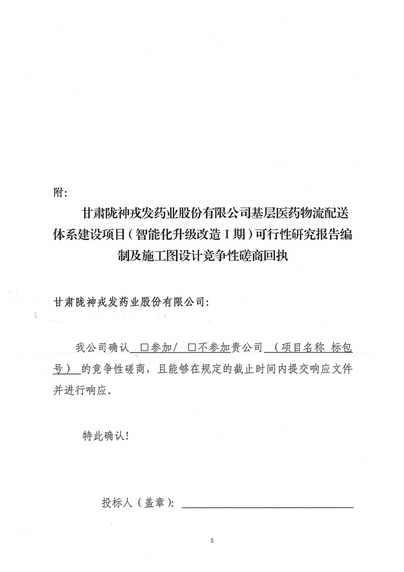 甘肅隴神戎發藥業股份有限公司基層醫藥物流配送體系建設項目(智能化升級改造Ⅰ期)可行性研究報告編制及施工圖設計競爭性磋商公告