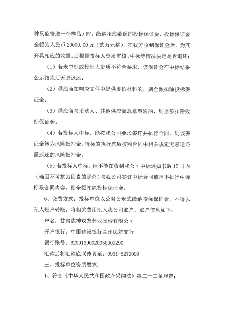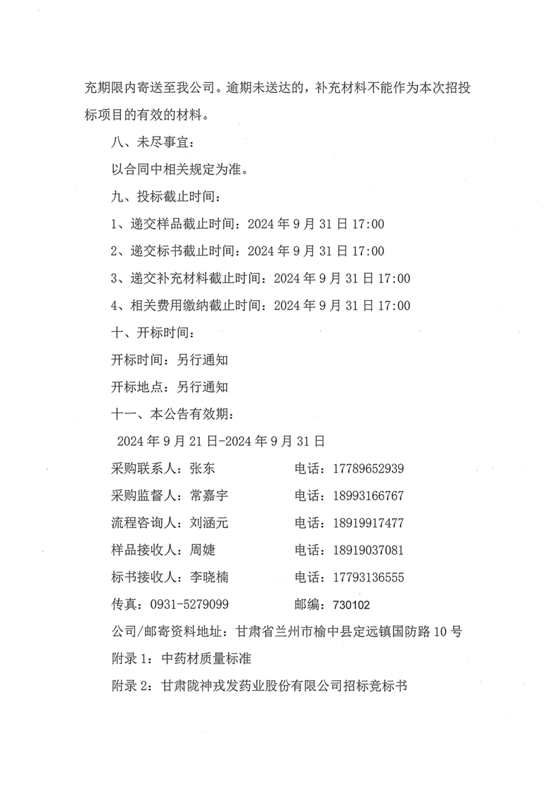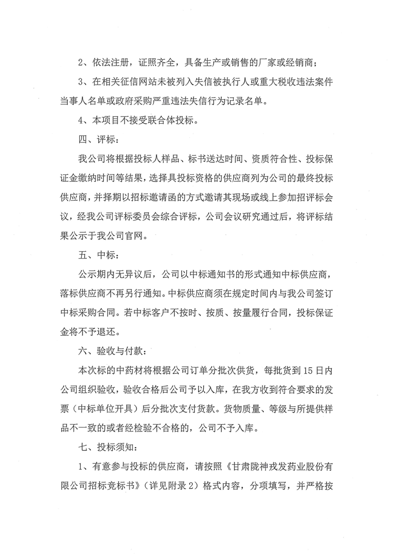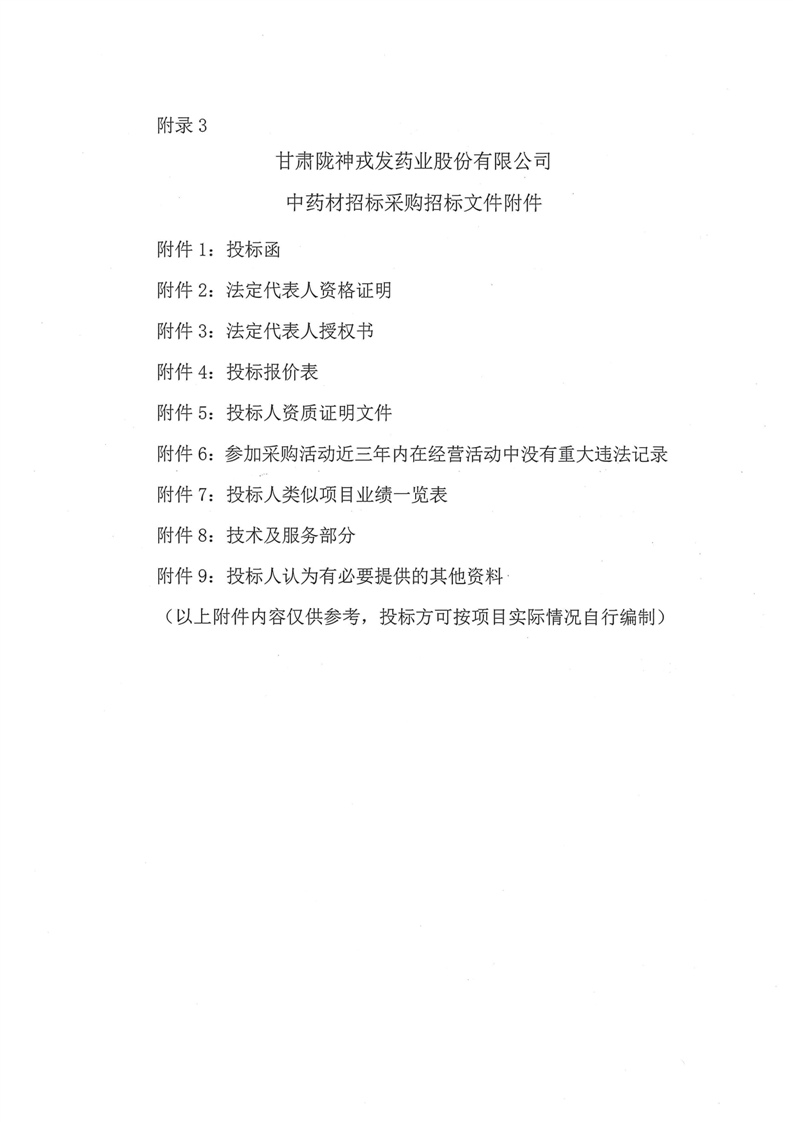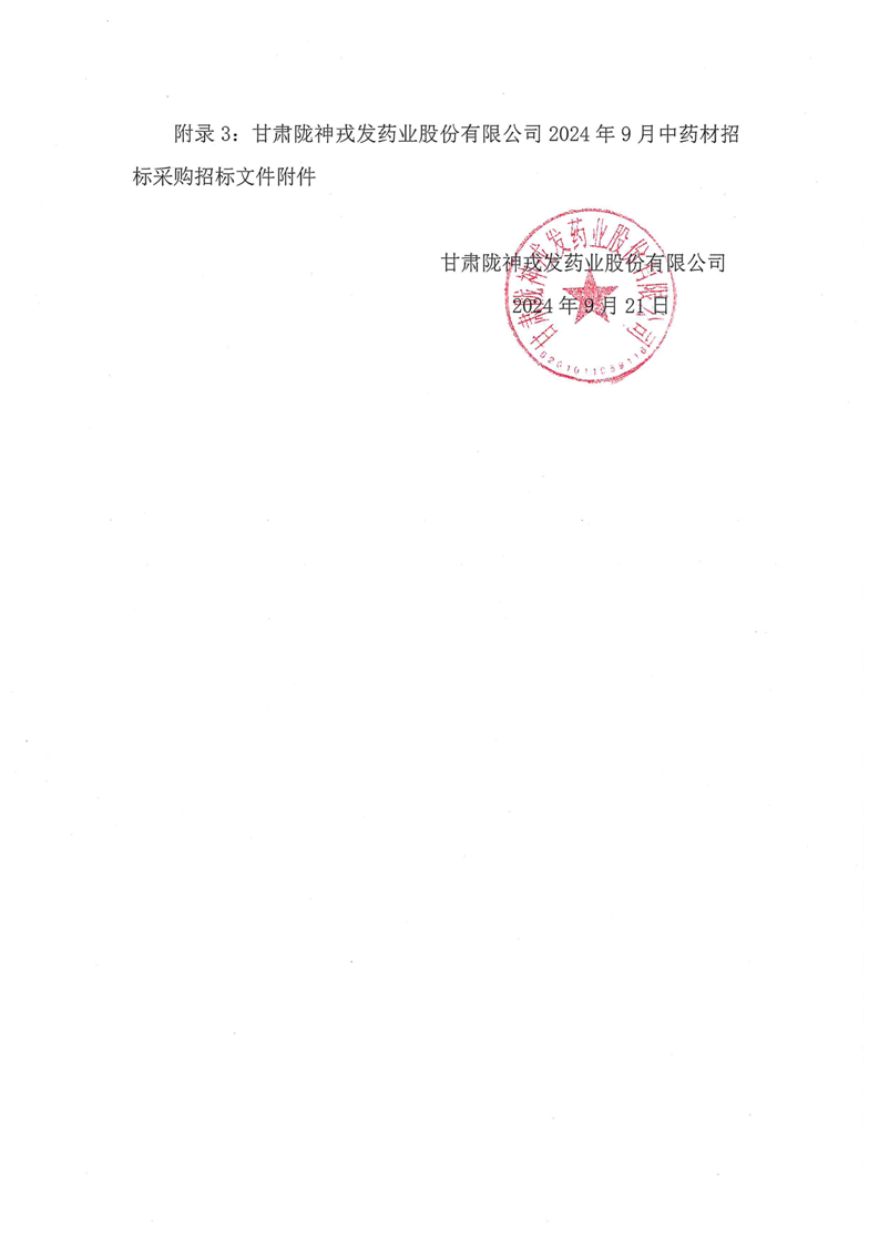 甘肅隴神戎發藥業股份有限公司2024年9月中藥材招標采購公告