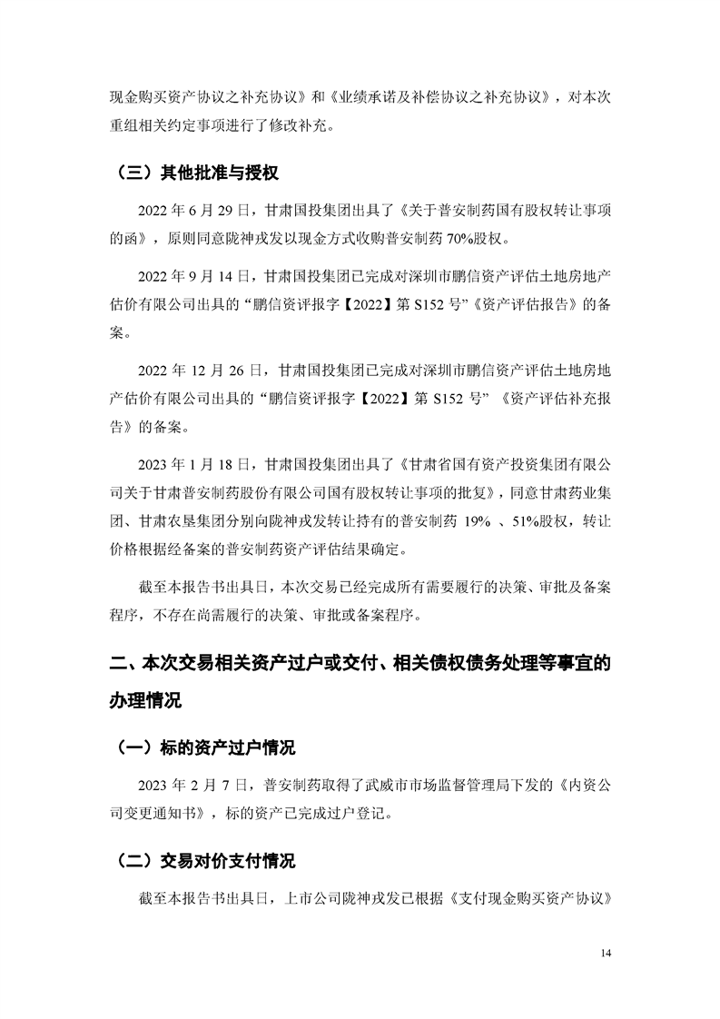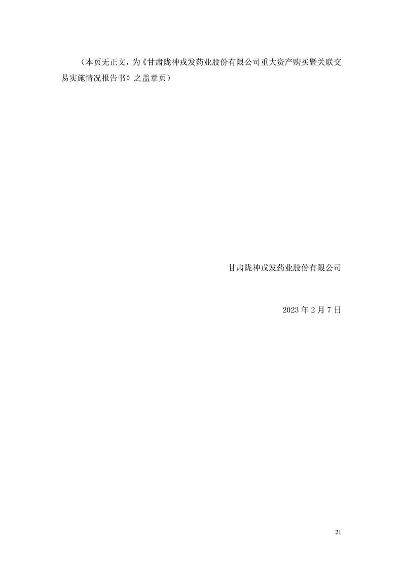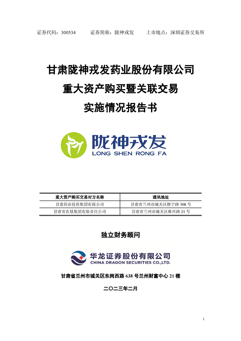 甘肅隴神戎發藥業股份有限公司重大資產購買暨關聯交易實施情況報告書
