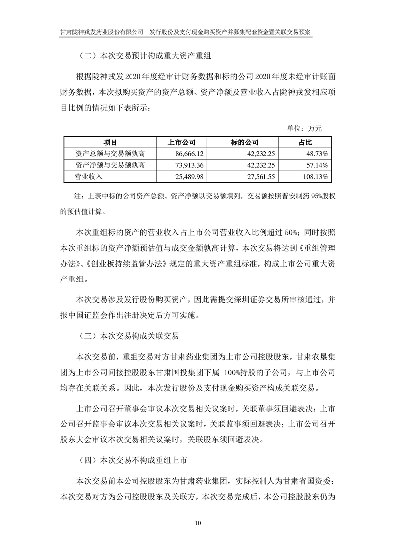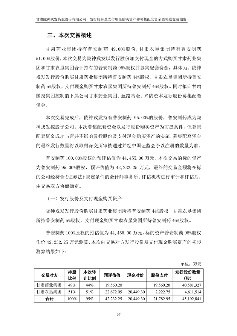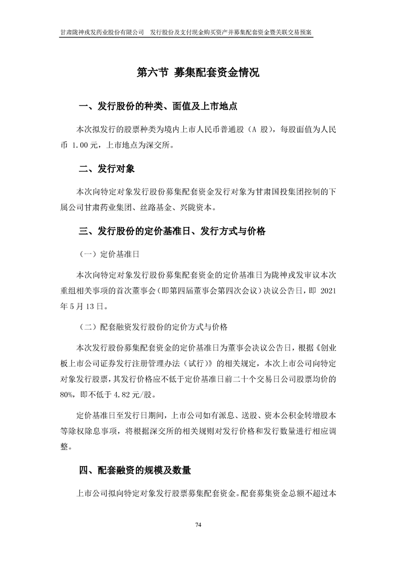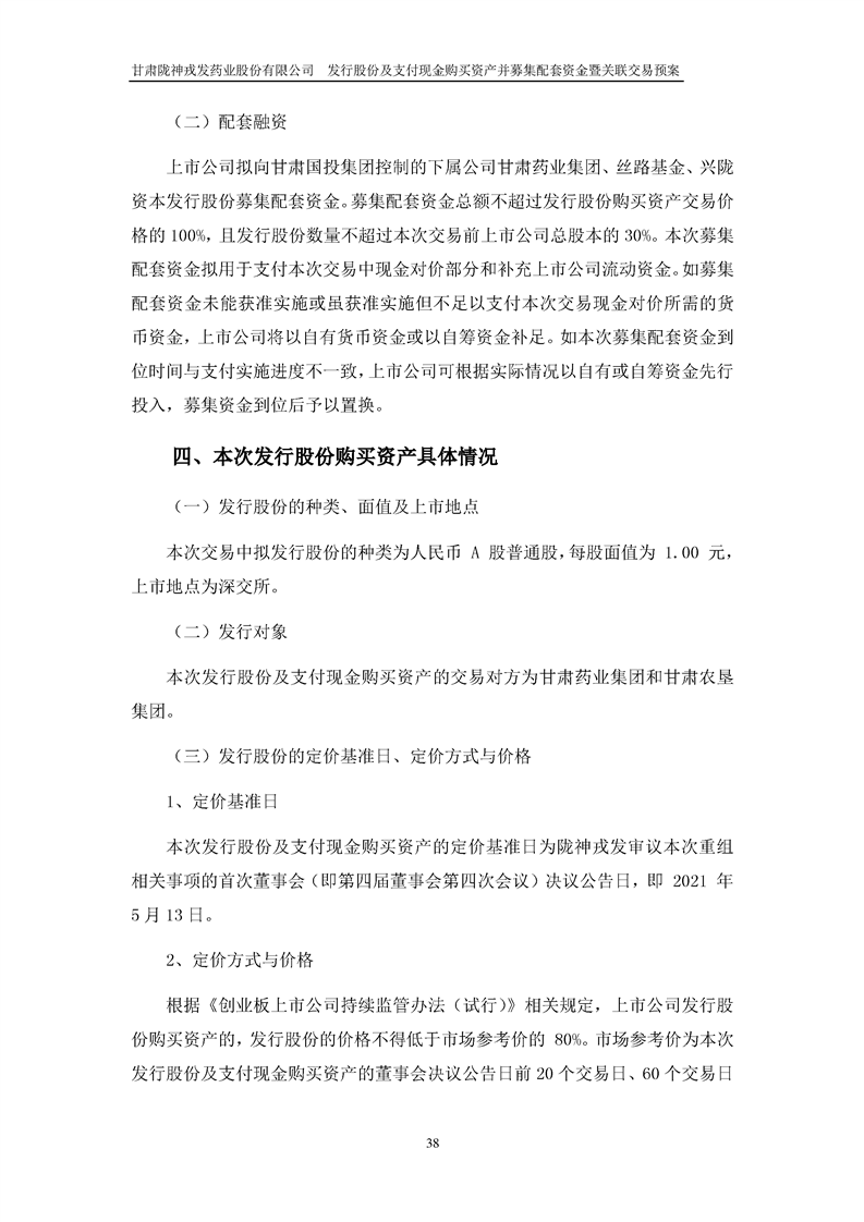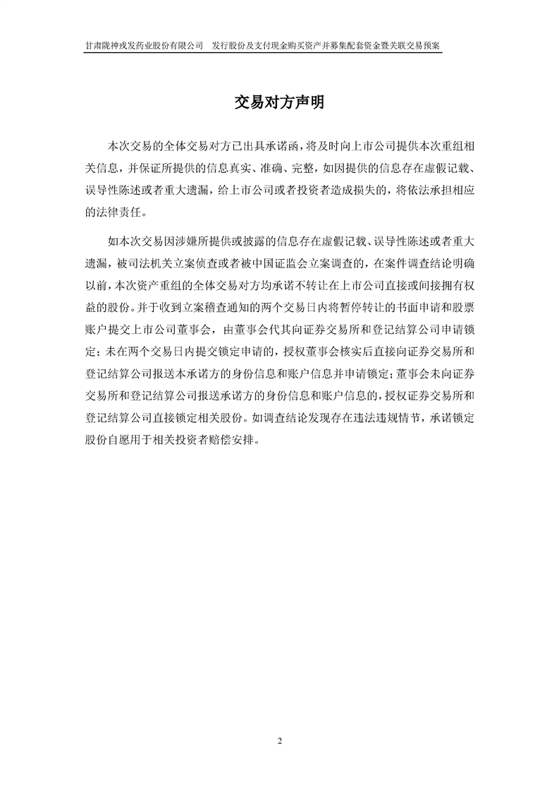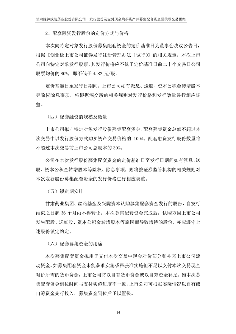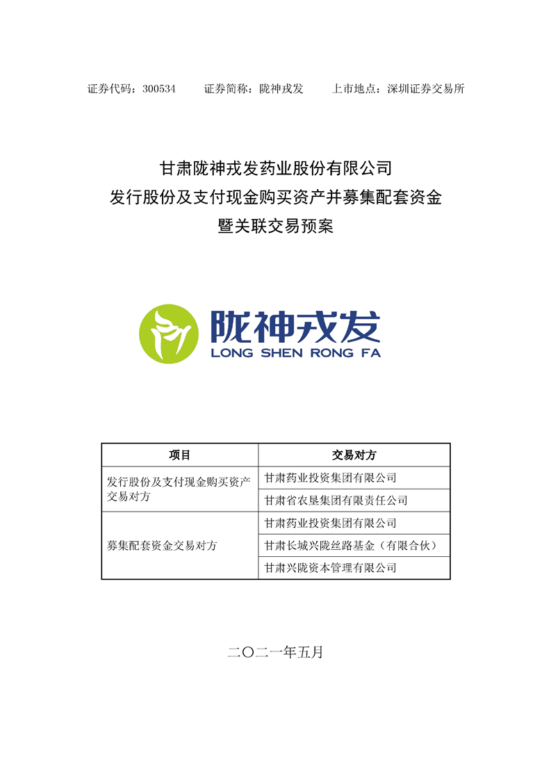 甘肅隴神戎發藥業股份有限公司發行股份及支付現金購買資產并募集配套資金暨關聯交易預案