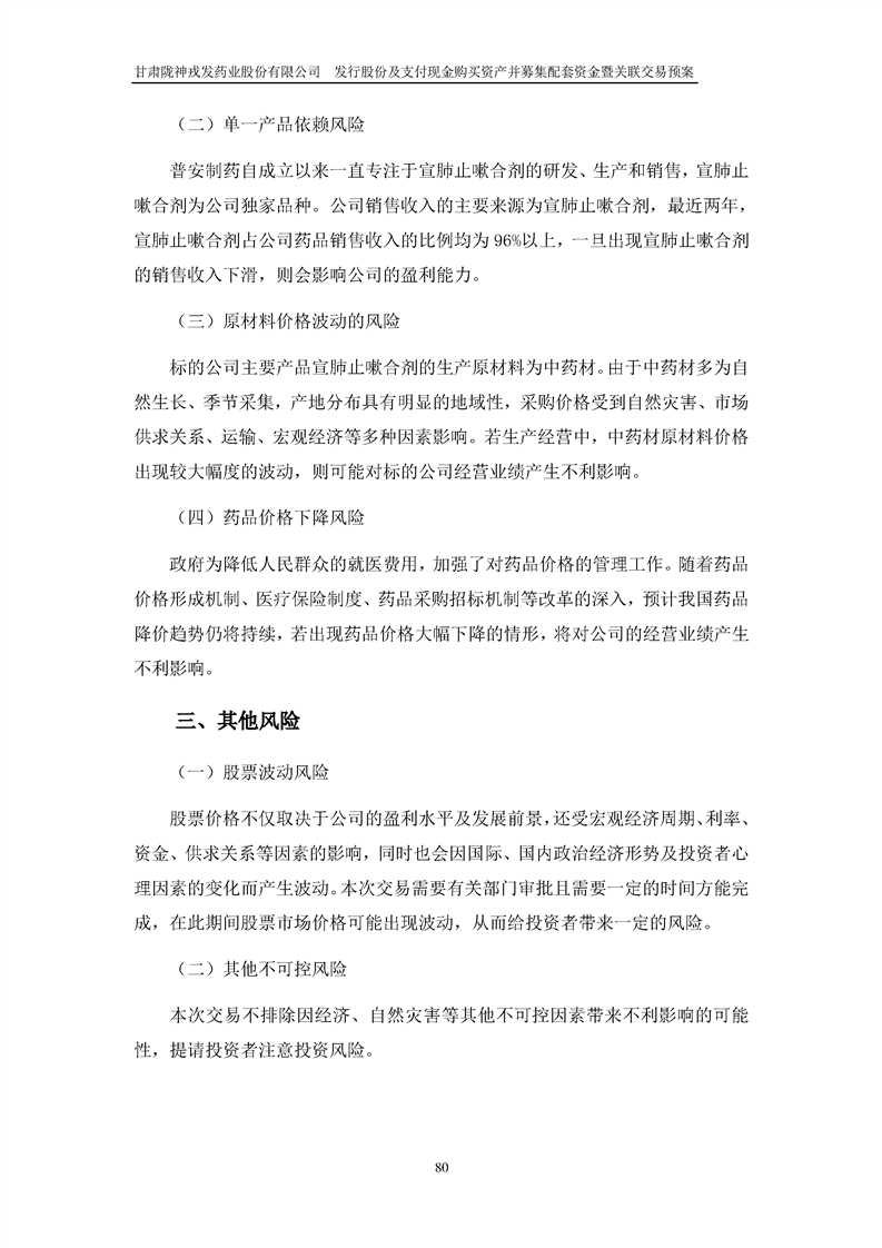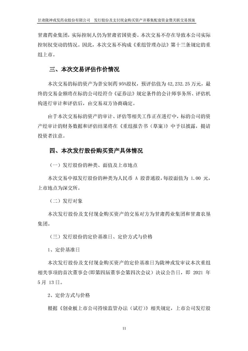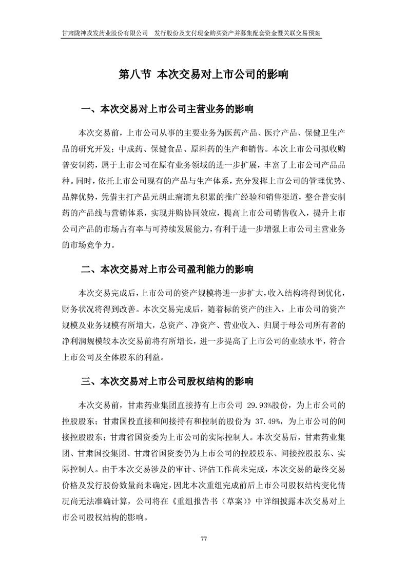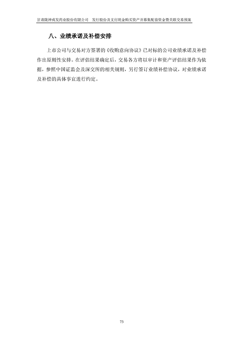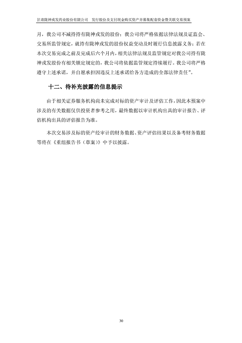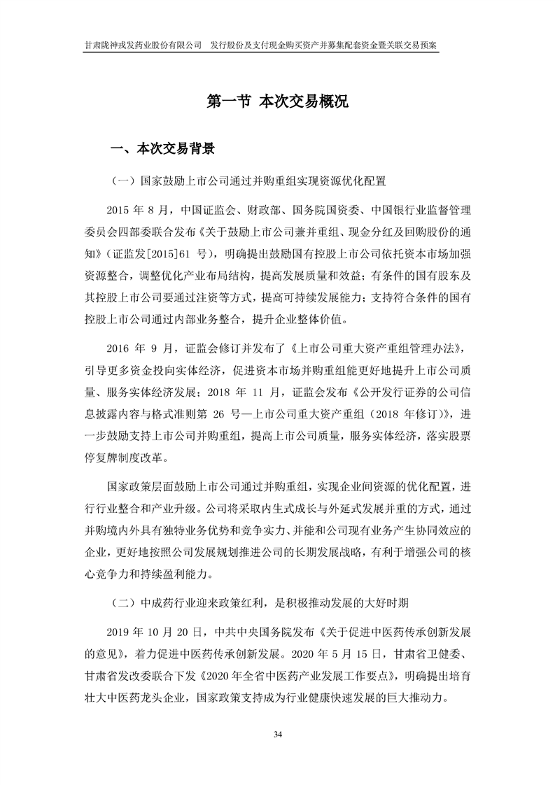 甘肅隴神戎發藥業股份有限公司發行股份及支付現金購買資產并募集配套資金暨關聯交易預案