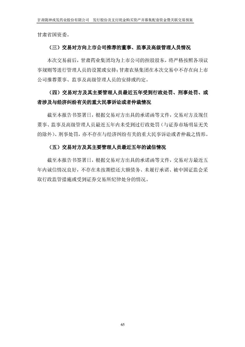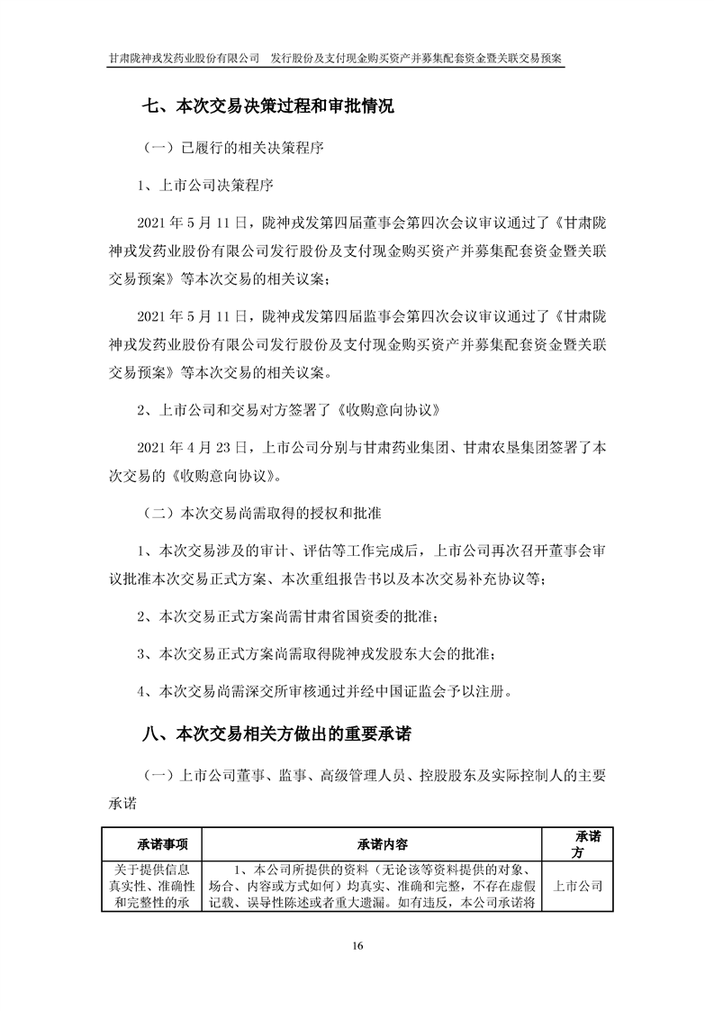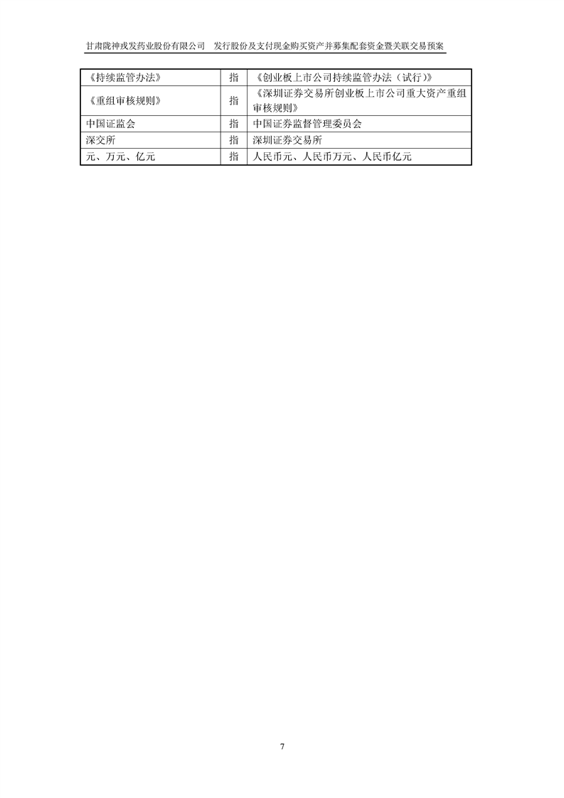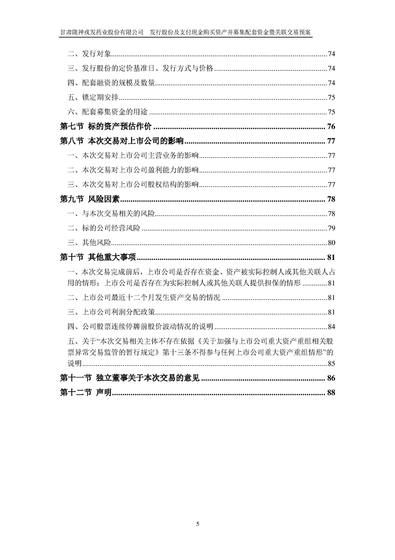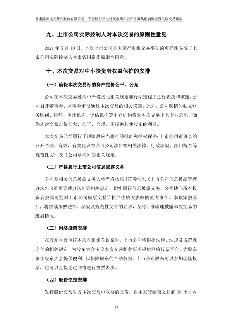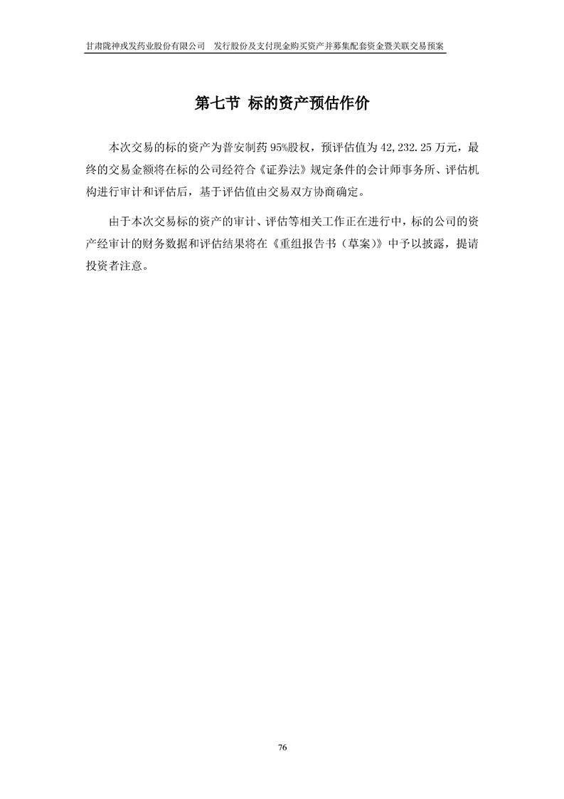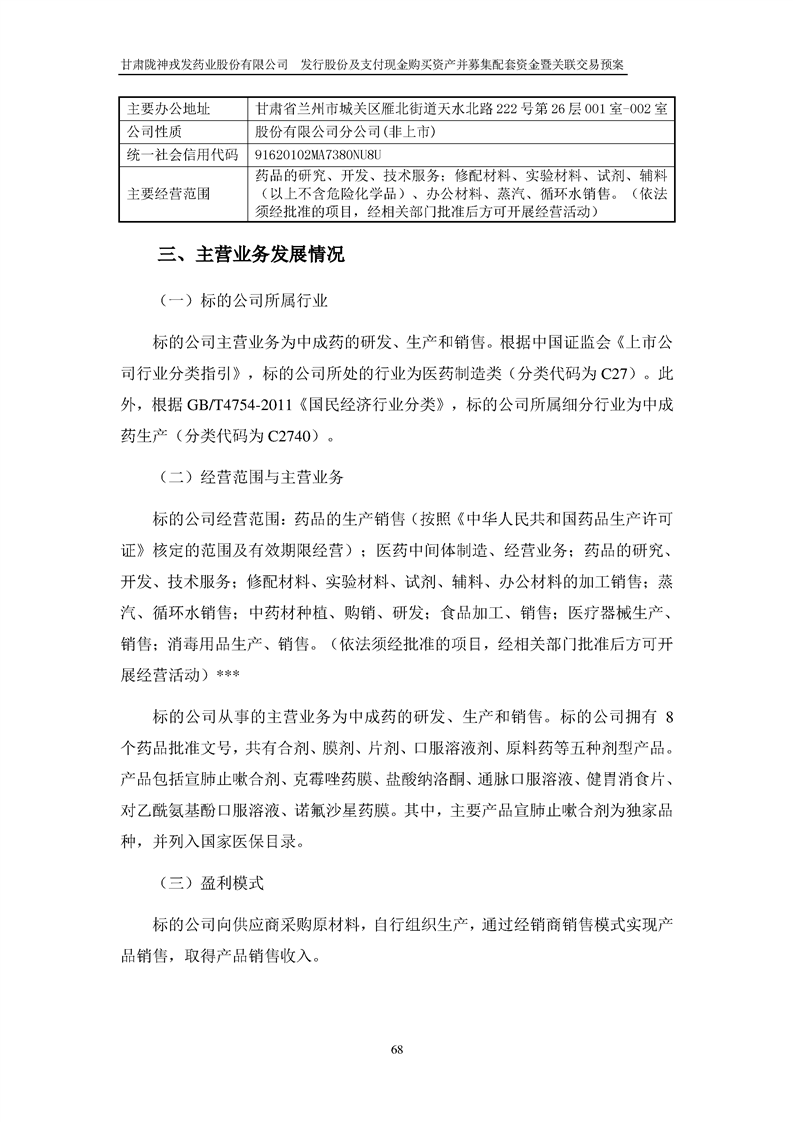 甘肅隴神戎發藥業股份有限公司發行股份及支付現金購買資產并募集配套資金暨關聯交易預案