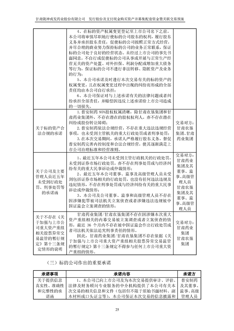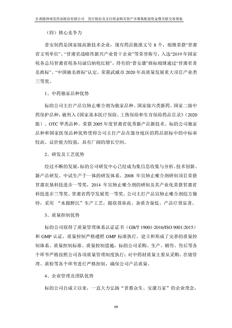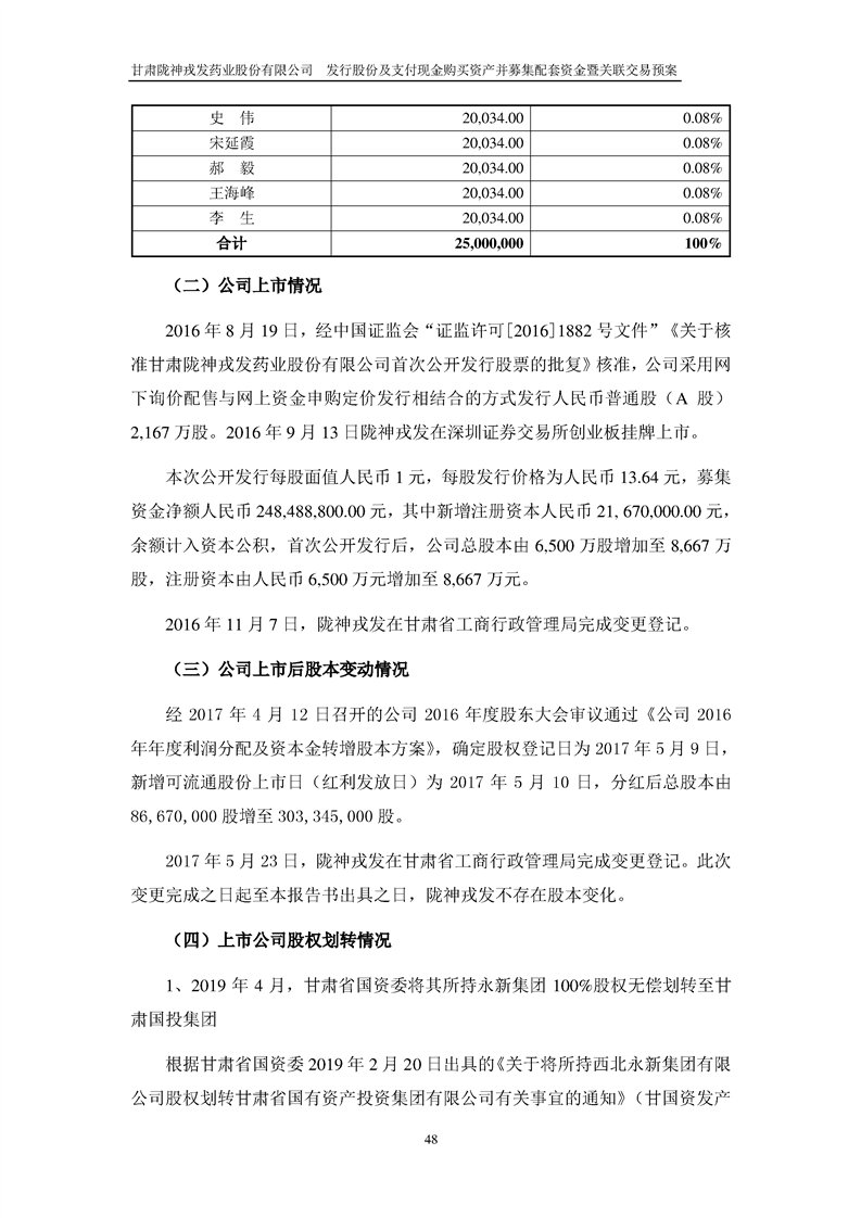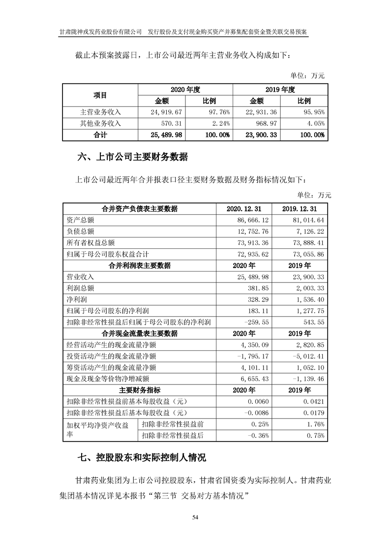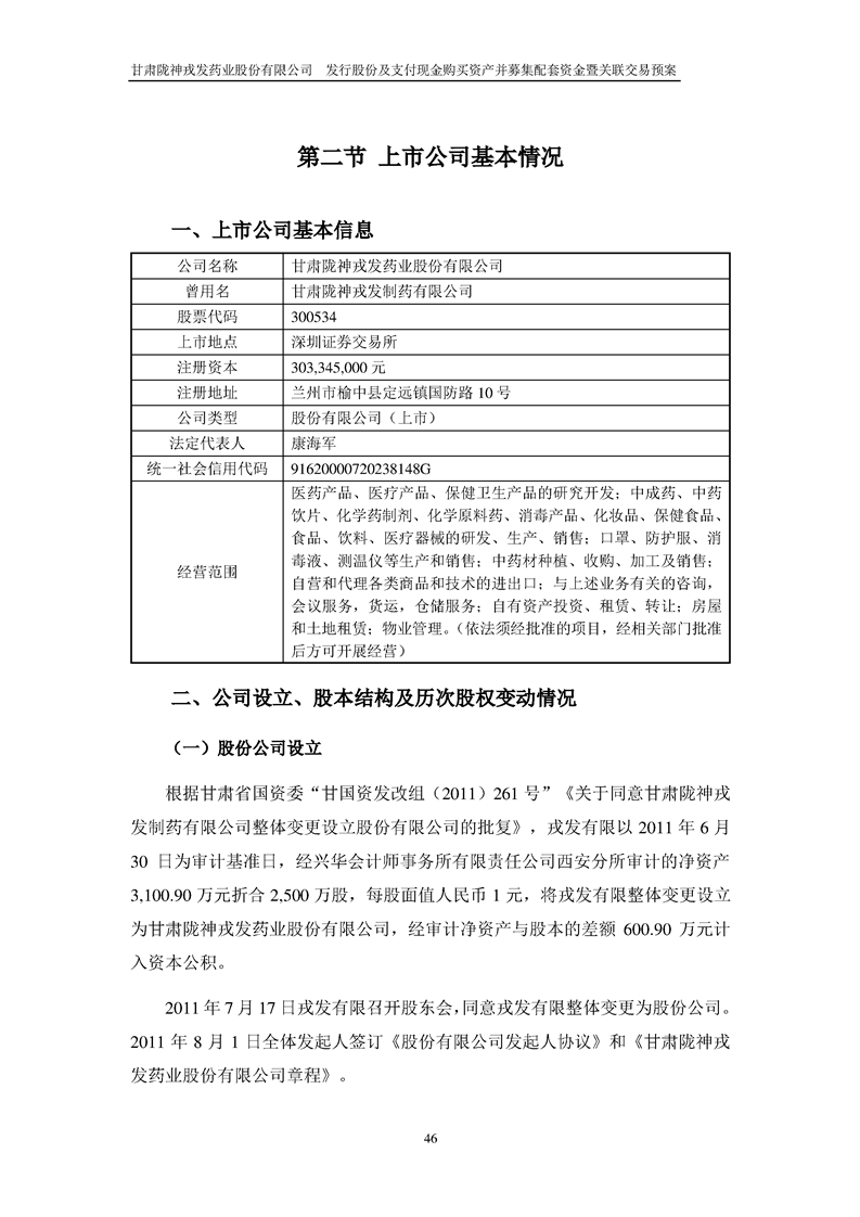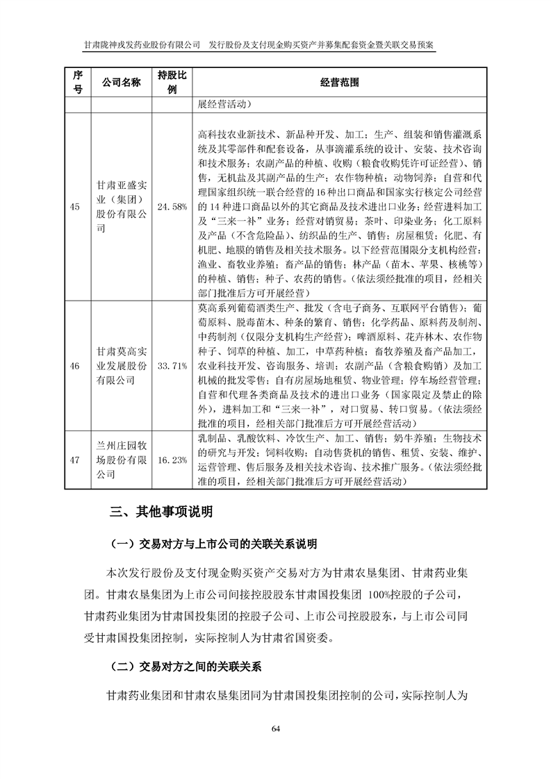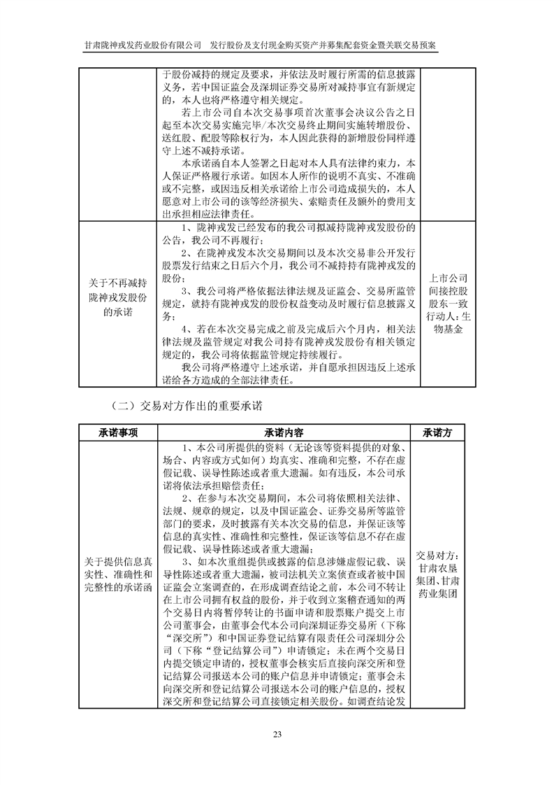 甘肅隴神戎發藥業股份有限公司發行股份及支付現金購買資產并募集配套資金暨關聯交易預案