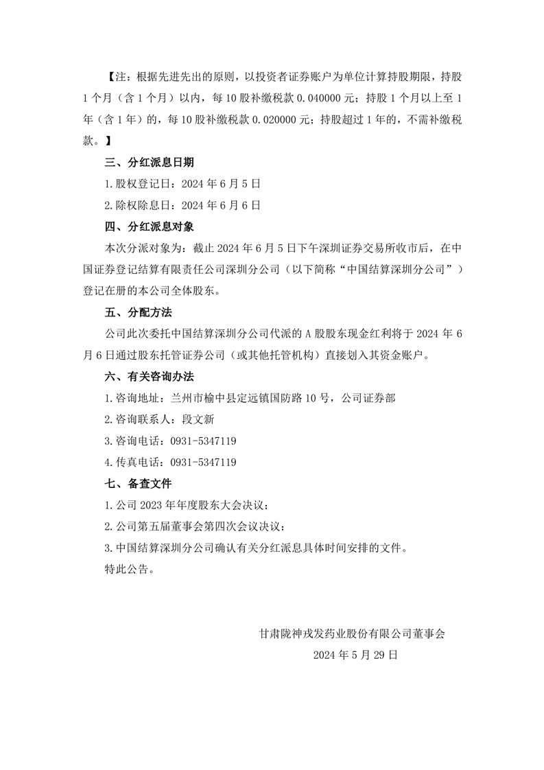 2023年度分紅派息實施公告