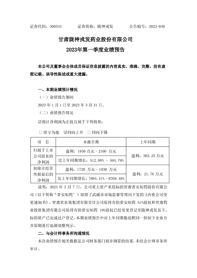 2023年第一季度業績預告