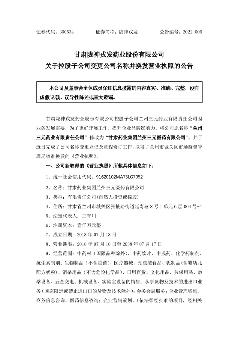 關(guān)于控股子公司變更公司名稱并換發(fā)營業(yè)執(zhí)照的公告