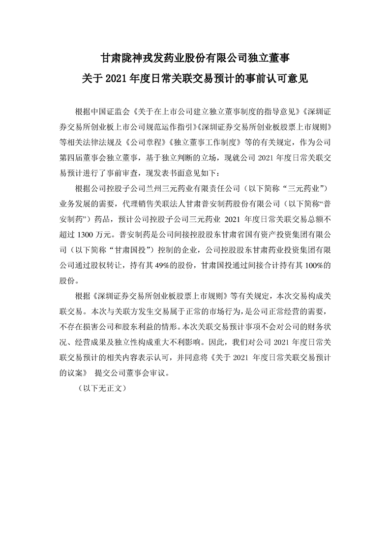 獨立董事關于2021年度日常關聯交易預計的事前認可意見