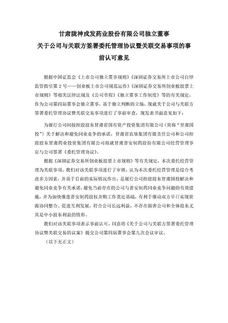 獨立董事關于公司與關聯方簽署委托管理協議暨關聯交易事項的事前認可意見
