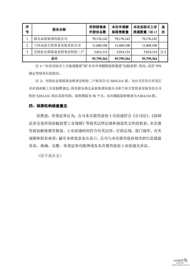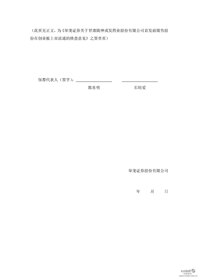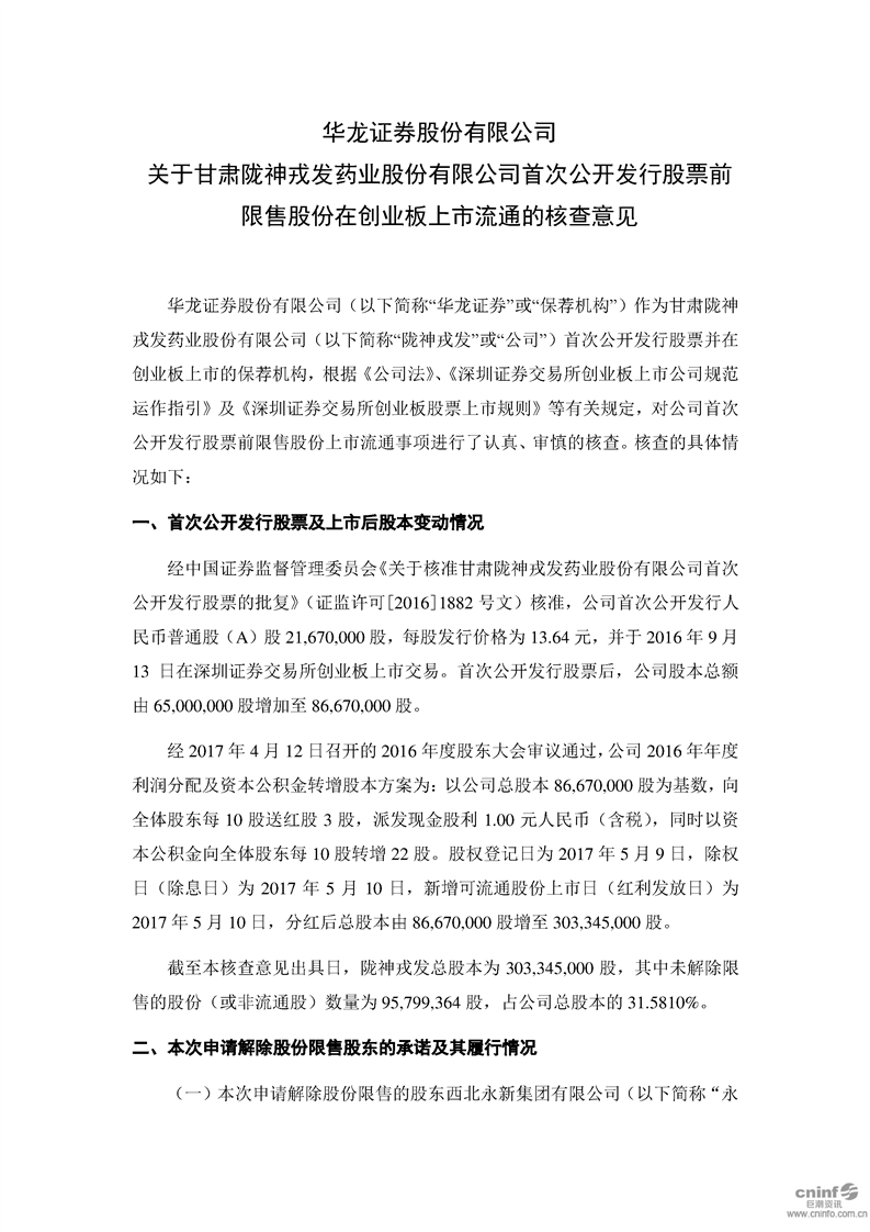華龍證券股份有限公司關于公司首次公開發行股票前限售股份在創業板上市流通的核查意見