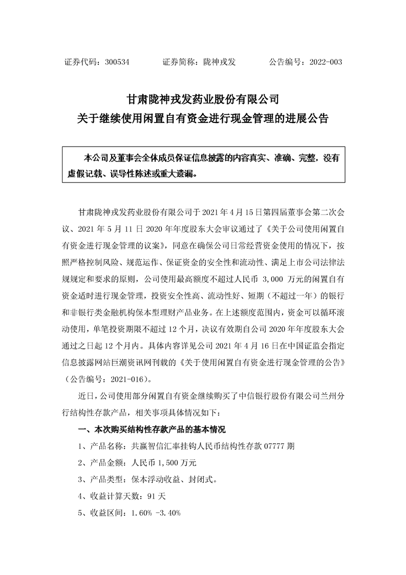 關于繼續使用閑置自有資金進行現金管理的進展公告