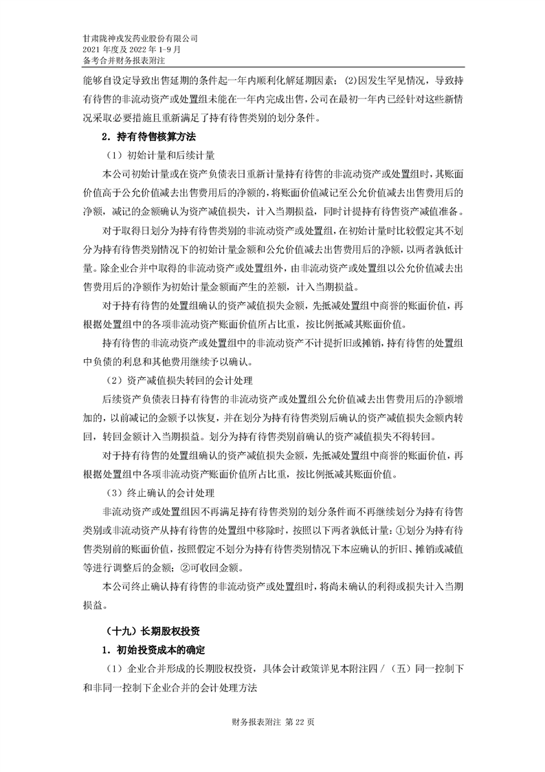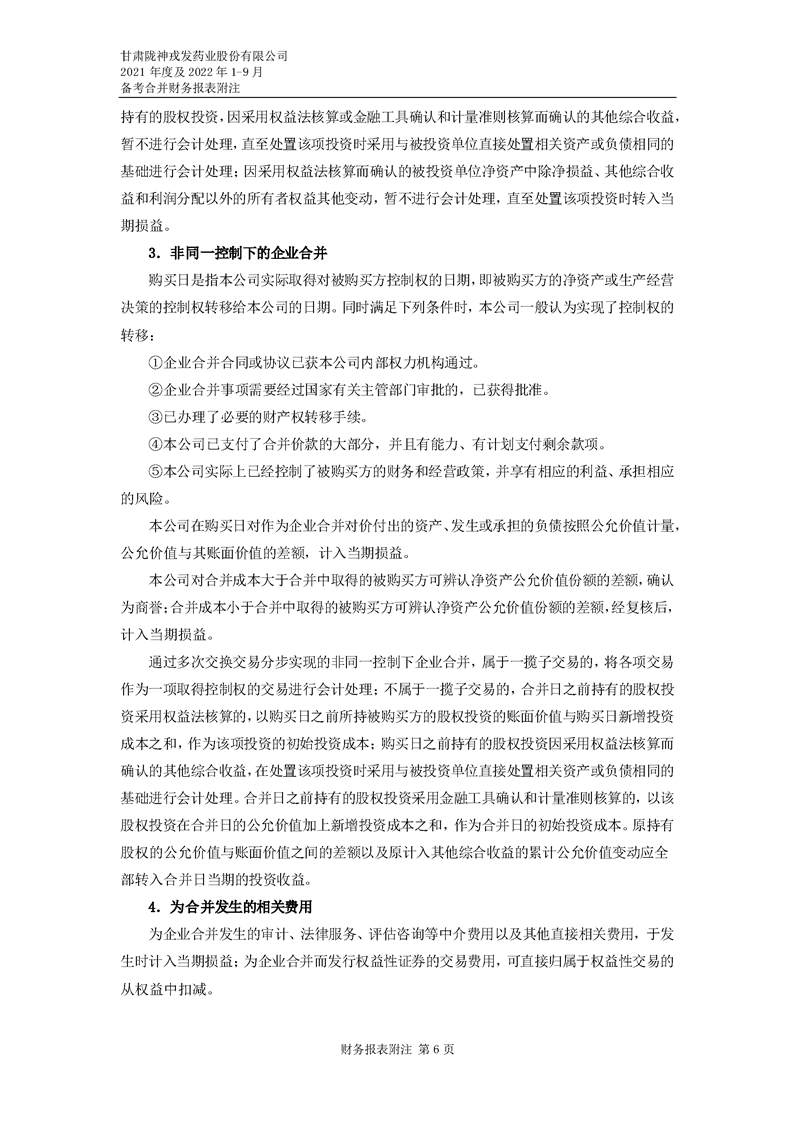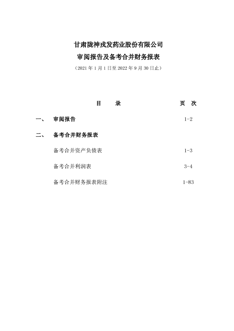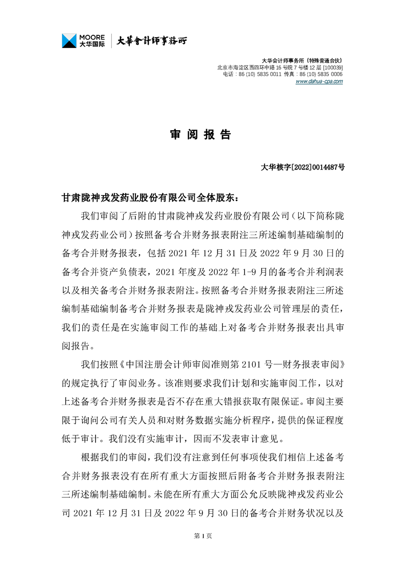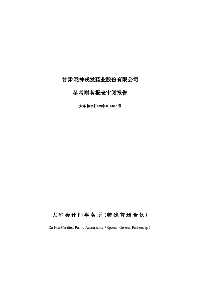 甘肅隴神戎發藥業股份有限公司備考財務報表審閱報告-大華核字[2022]0014487號