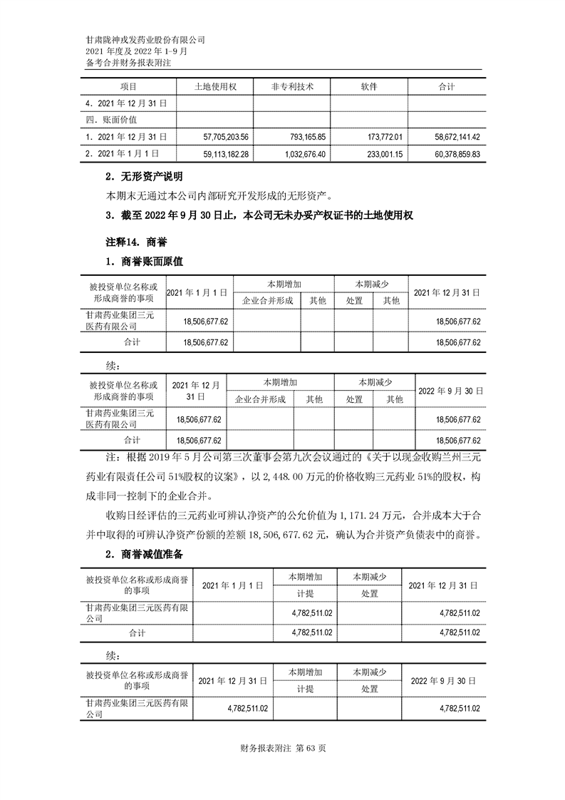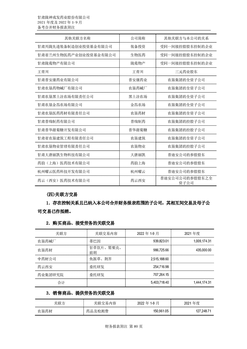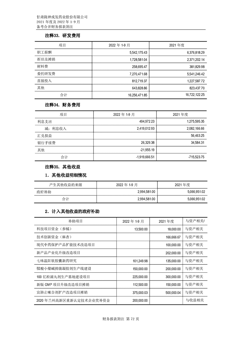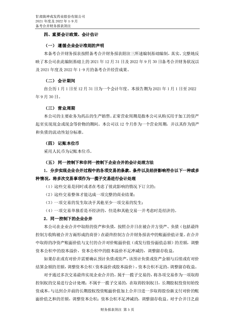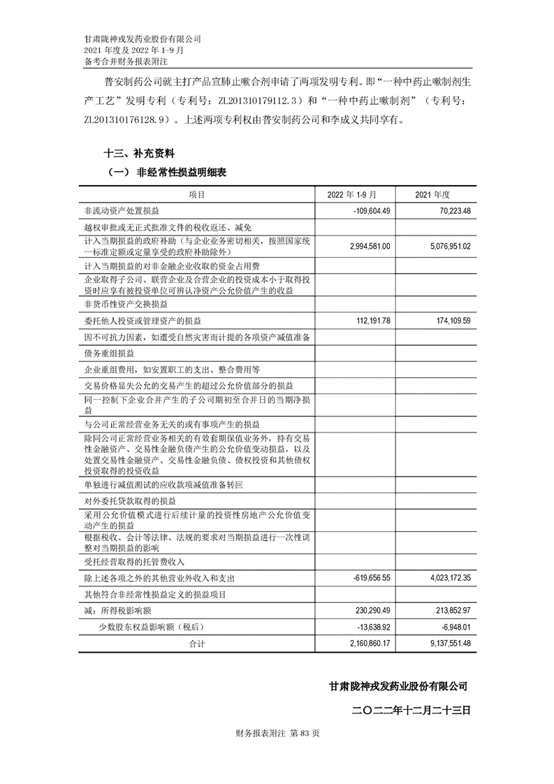 甘肅隴神戎發藥業股份有限公司備考財務報表審閱報告-大華核字[2022]0014487號