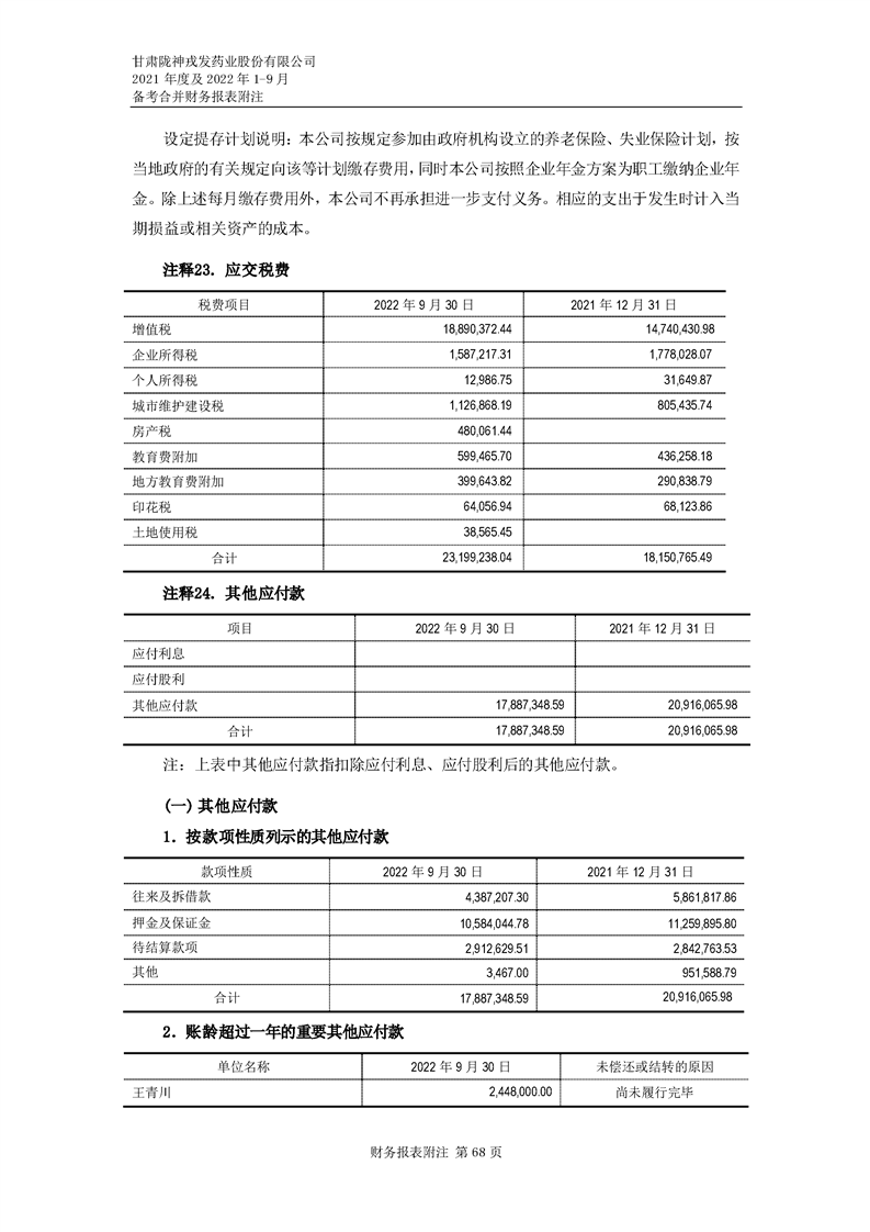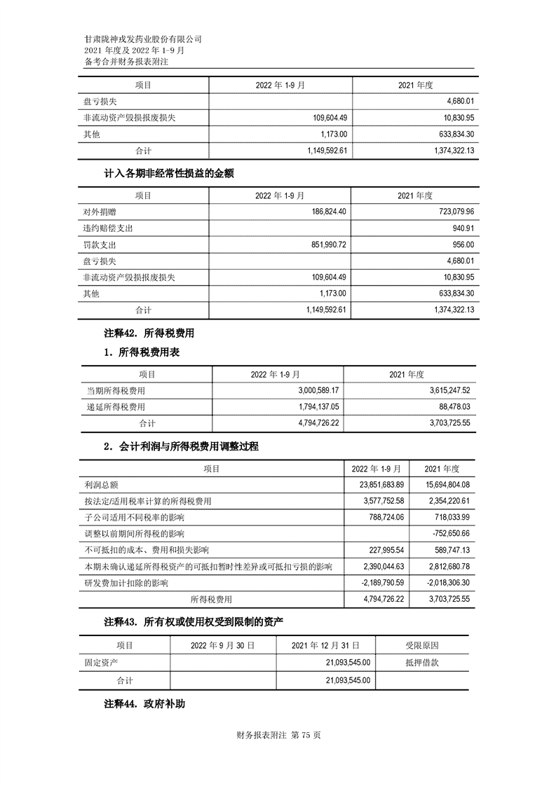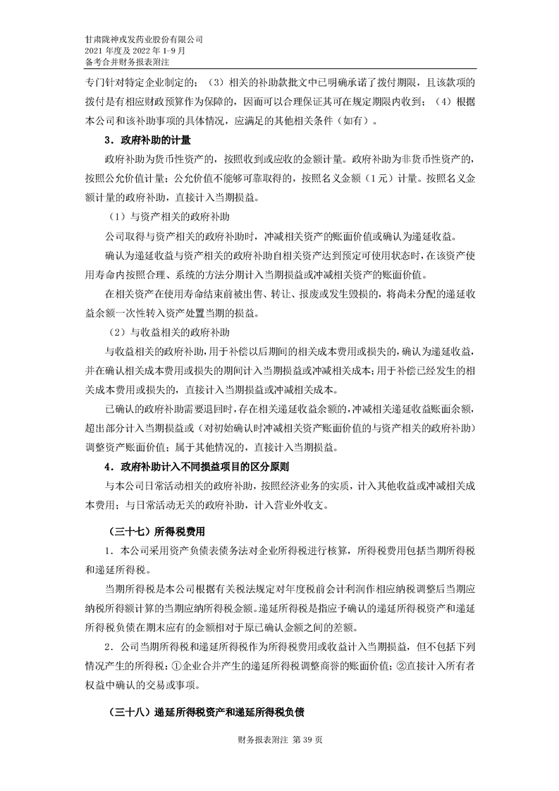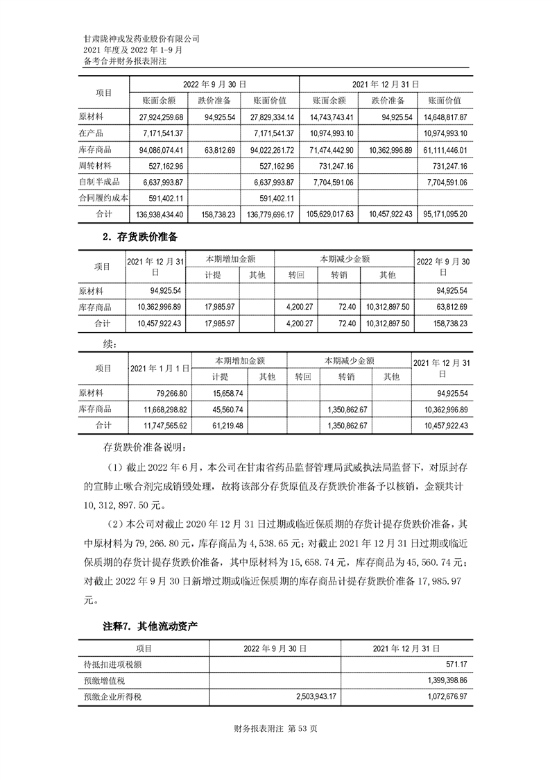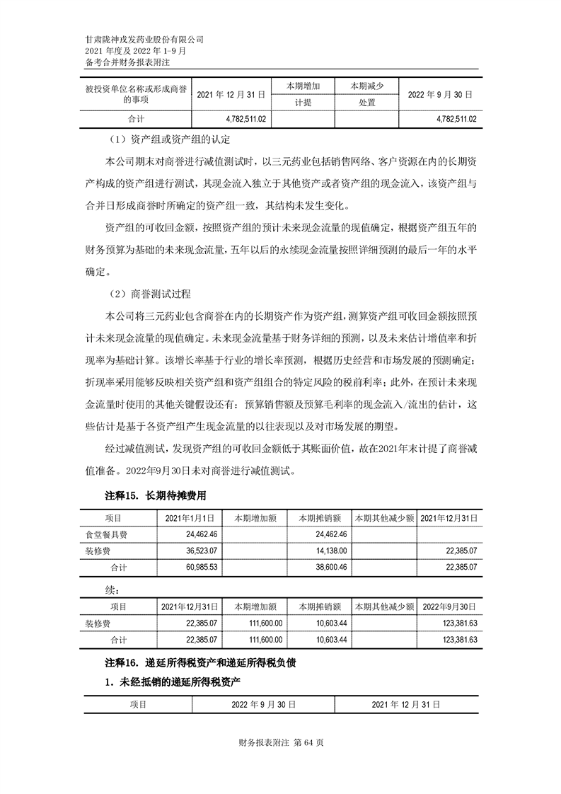甘肅隴神戎發藥業股份有限公司備考財務報表審閱報告-大華核字[2022]0014487號