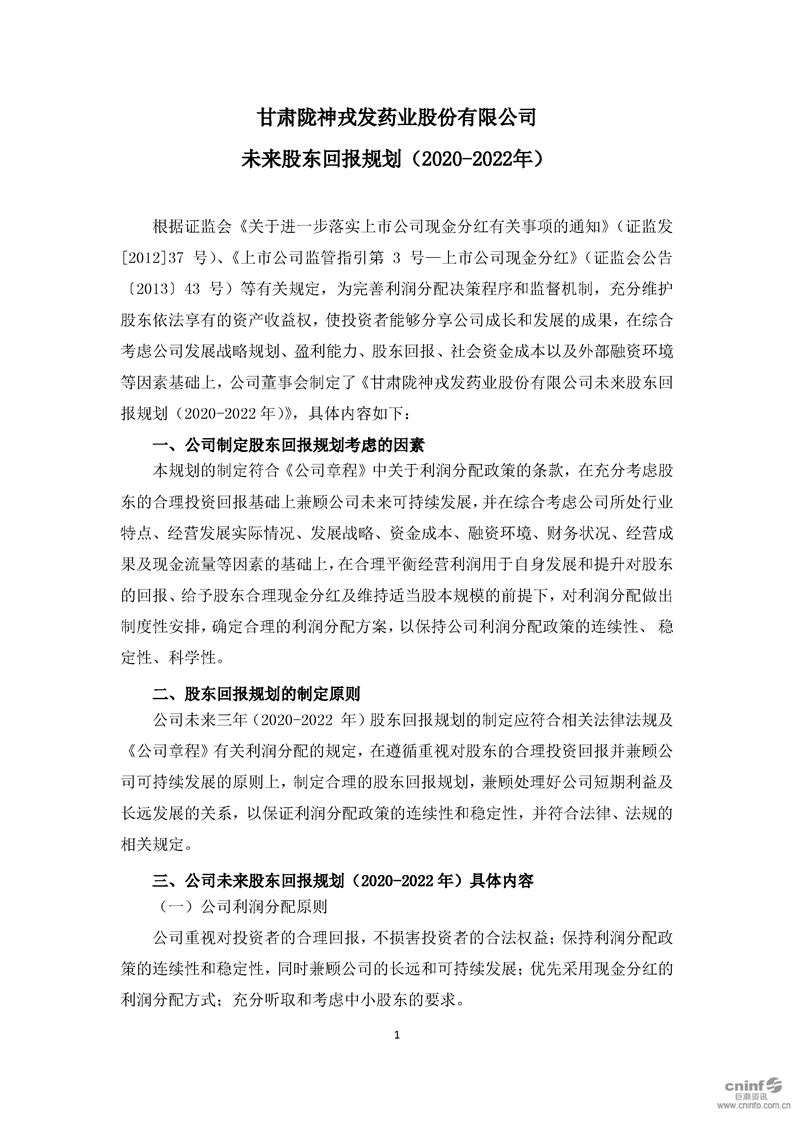 未來股東回報規劃(2020-2022年)
