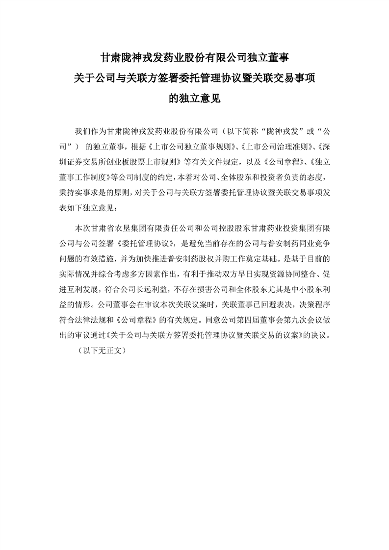 獨立董事關于公司與關聯方簽署委托管理協議暨關聯交易事項的獨立意見
