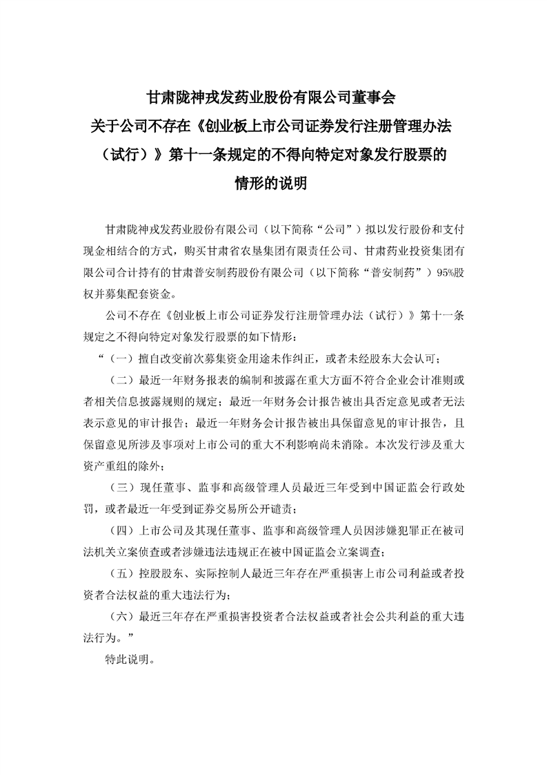 董事會關于公司不存在《創業板上市公司證券發行注冊管理辦法(試行)》第十一條規定的不得向特定對象發行股票的情形的說明