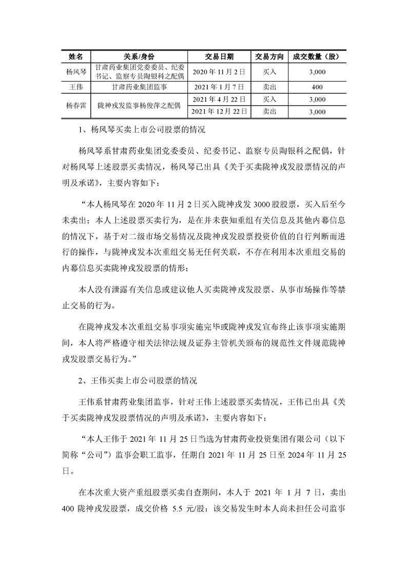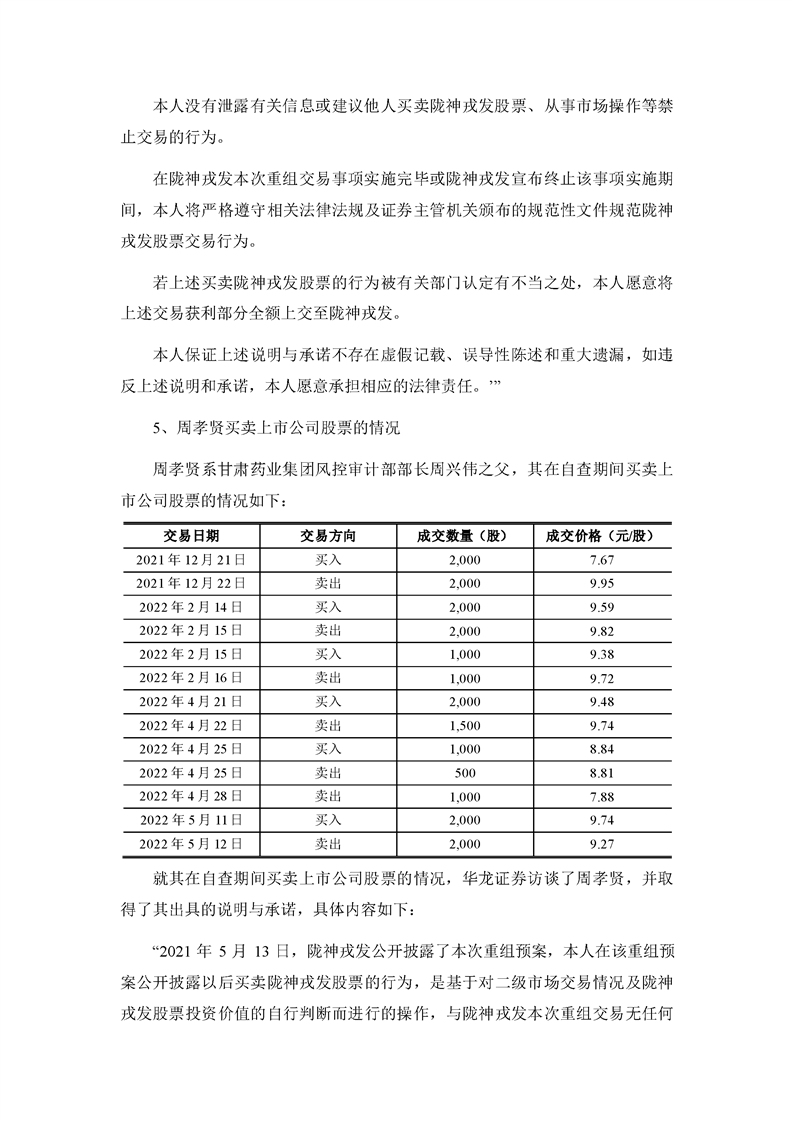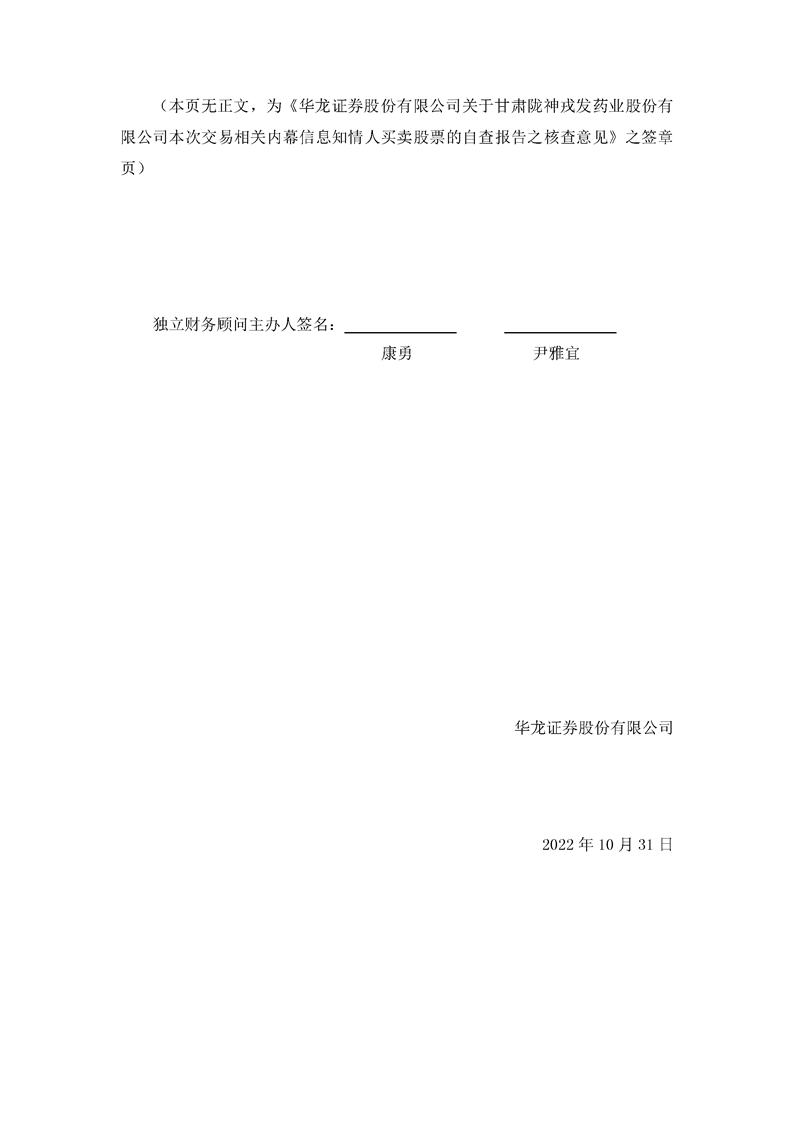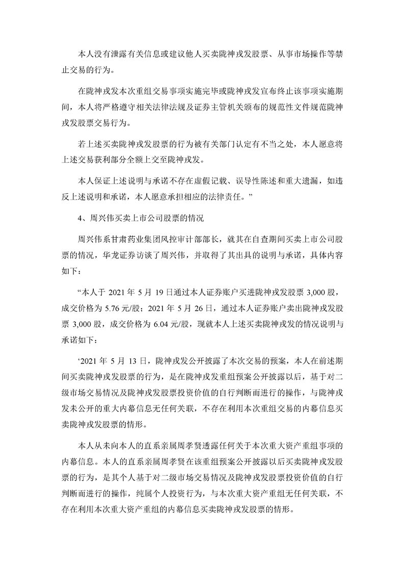 華龍證券股份有限公司關(guān)于甘肅隴神戎發(fā)藥業(yè)股份有限公司本次交易相關(guān)內(nèi)幕信息知情人買賣股票的自查報(bào)告之核查意見