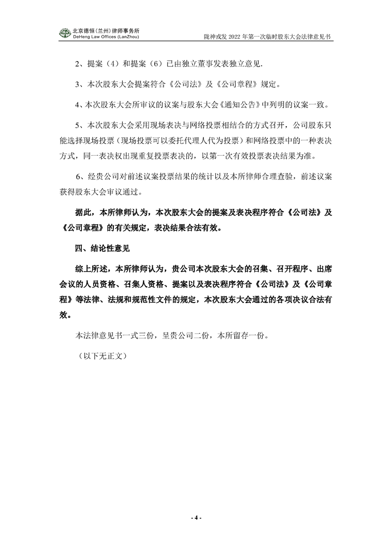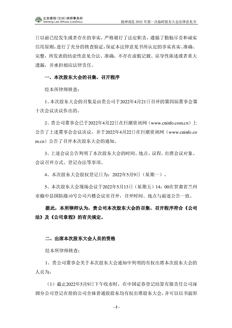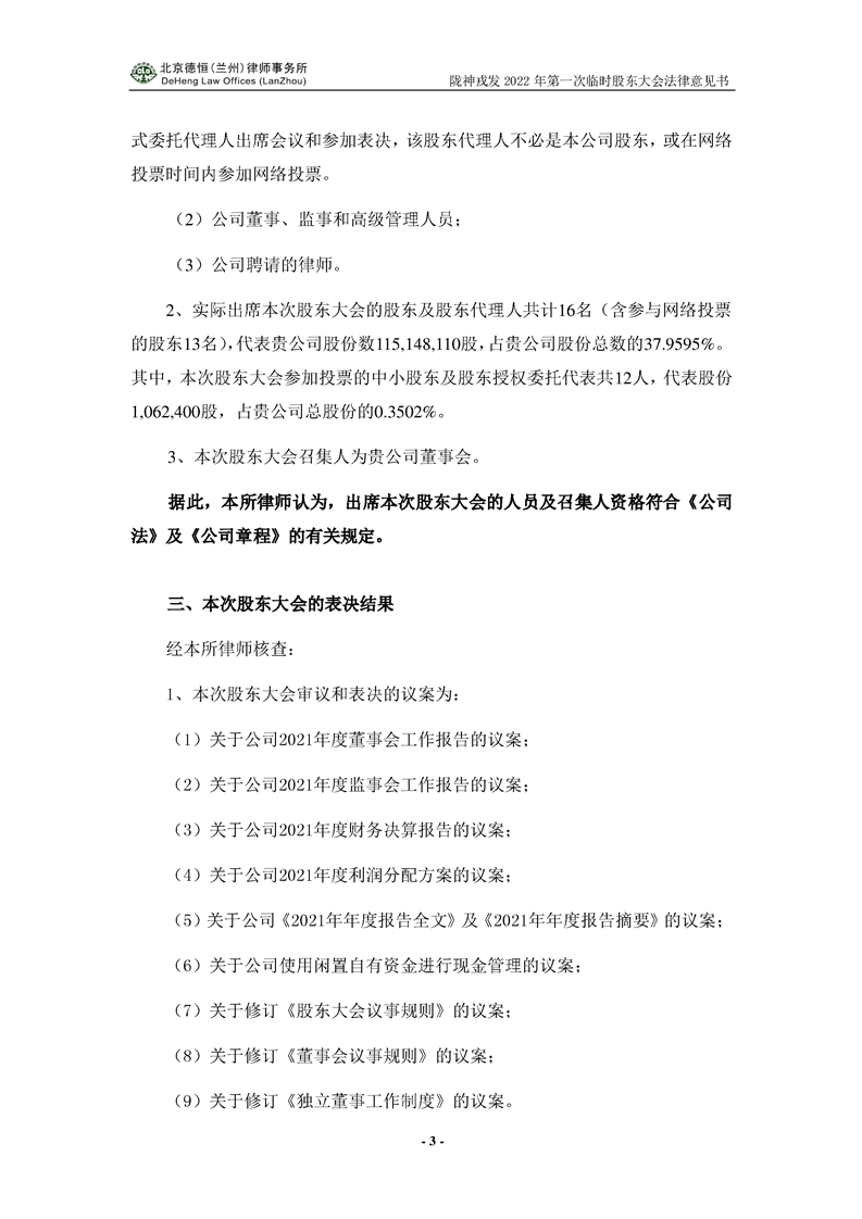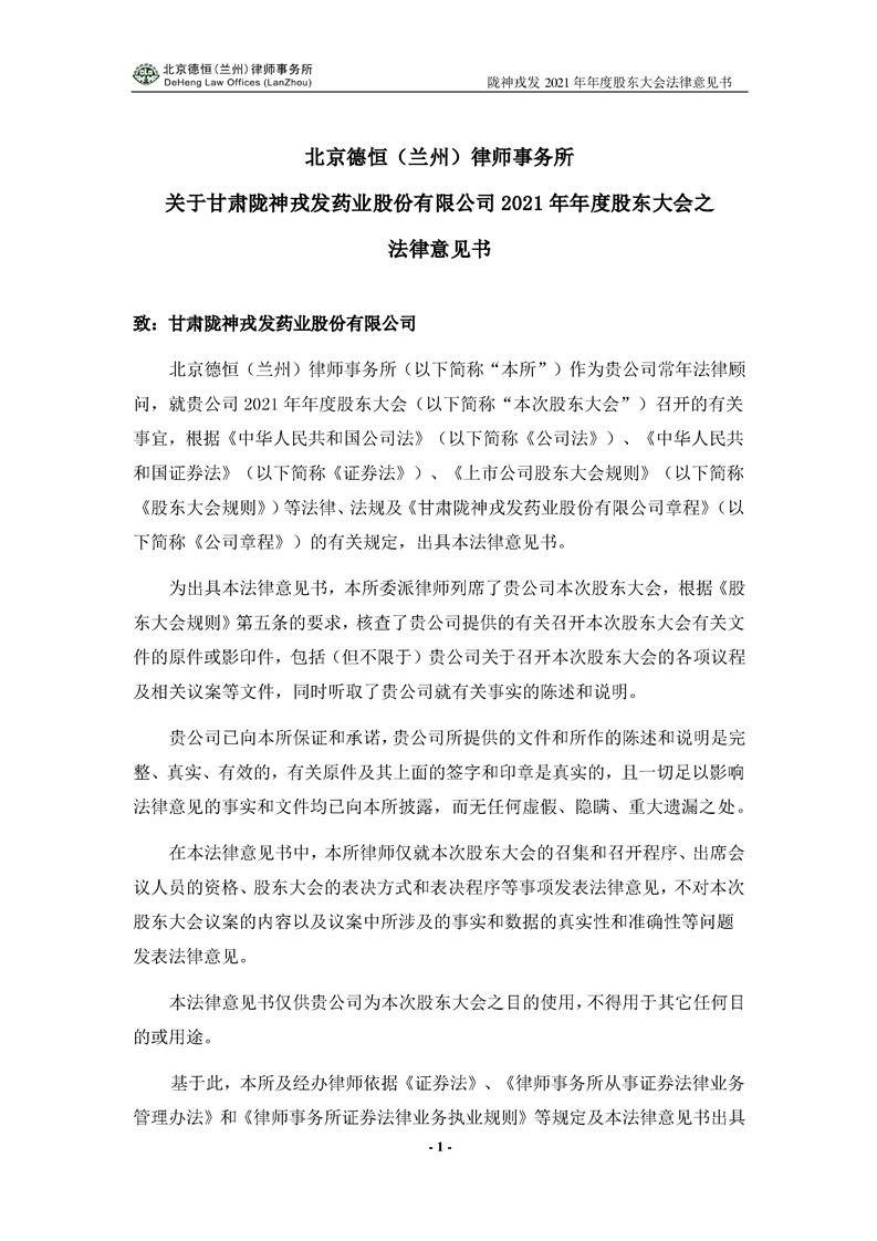 隴神戎發2021年年度股東大會法律意見書