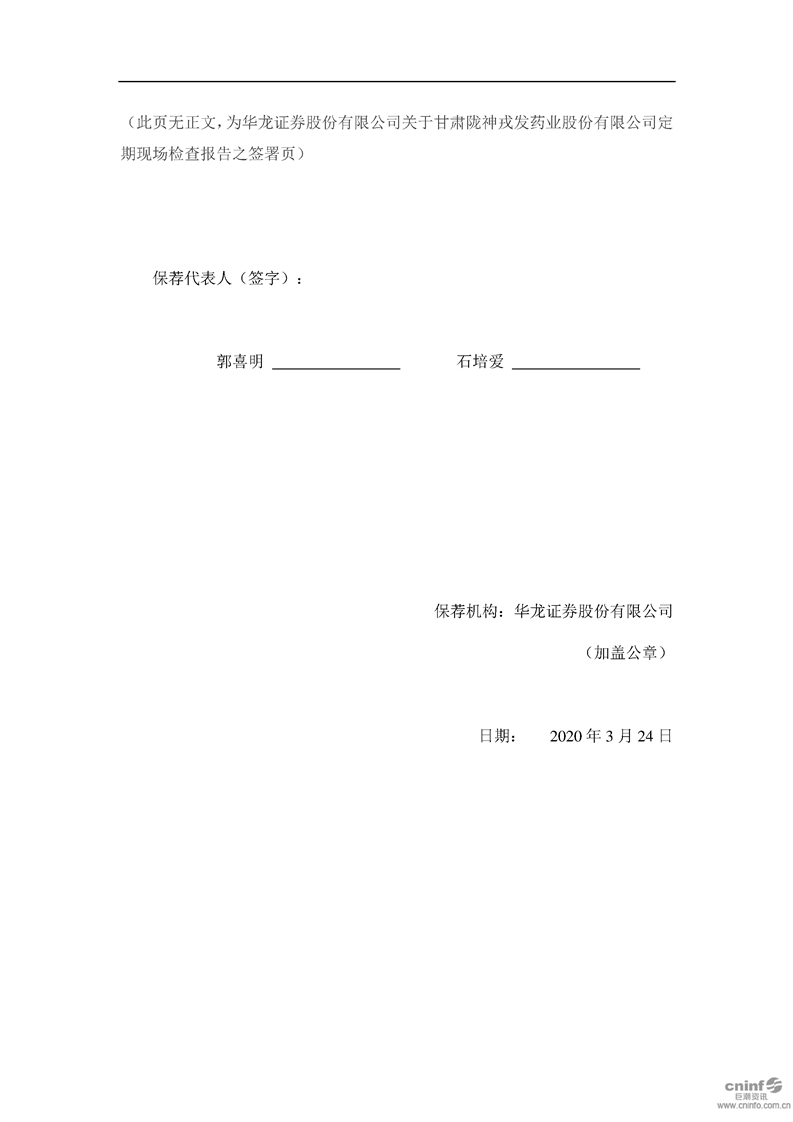華龍證券股份有限公司關于公司2019年度持續督導定期現場檢查報告