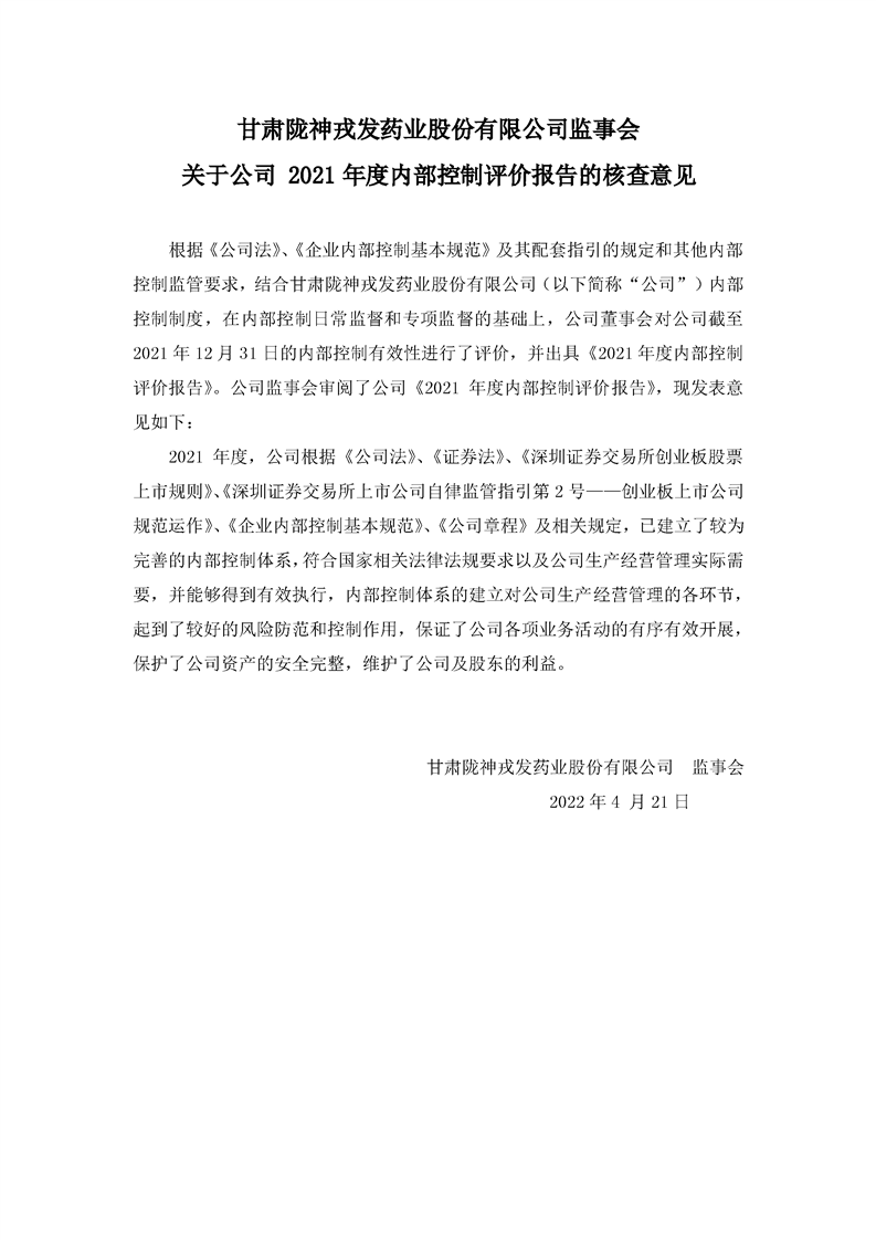 監事會關于公司2021年度內部控制評價報告的核查意見