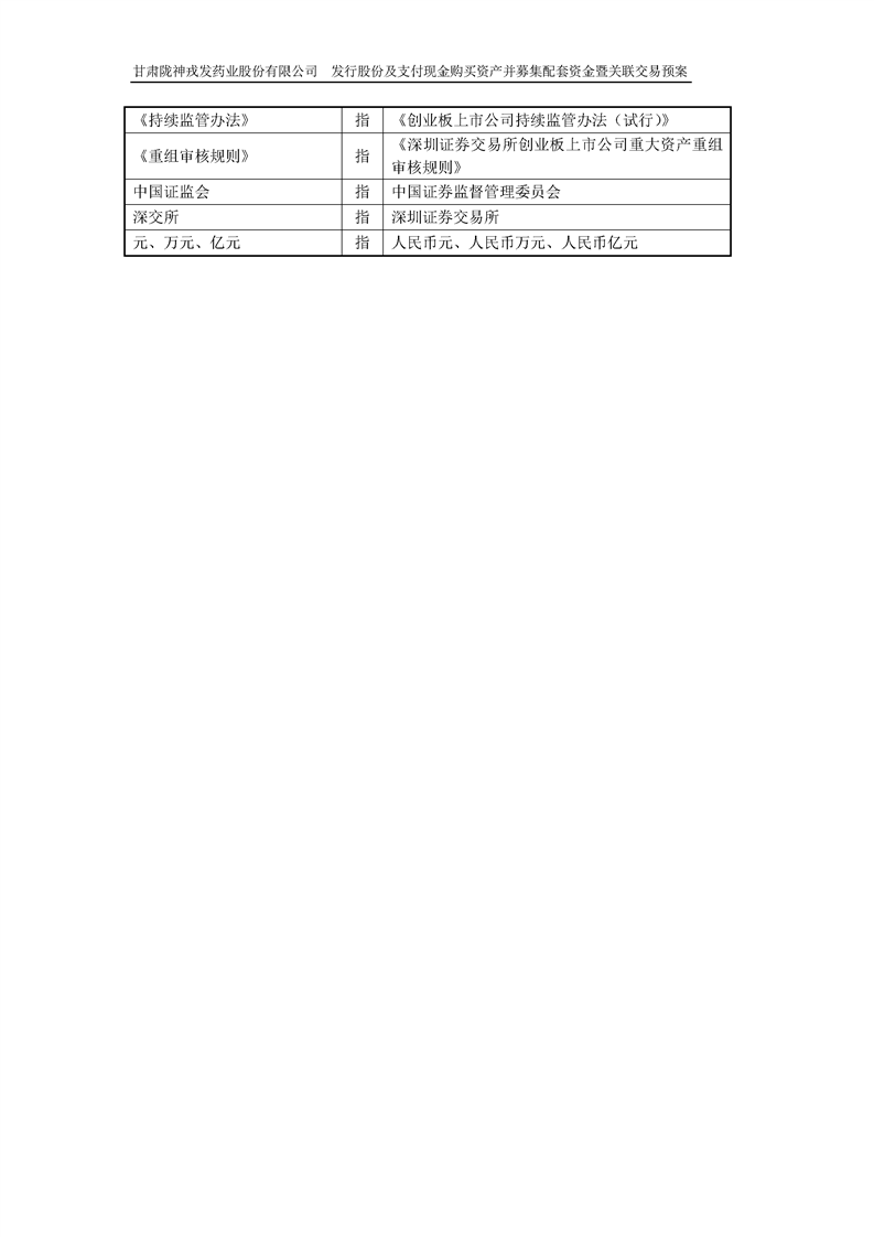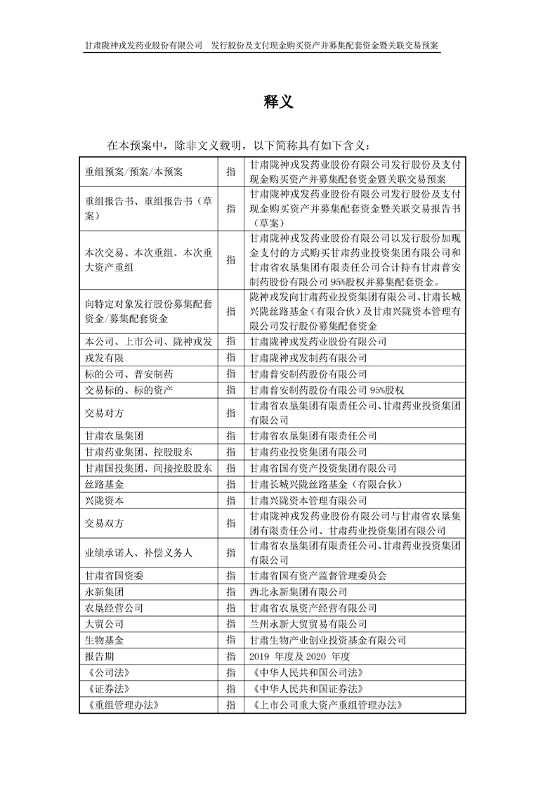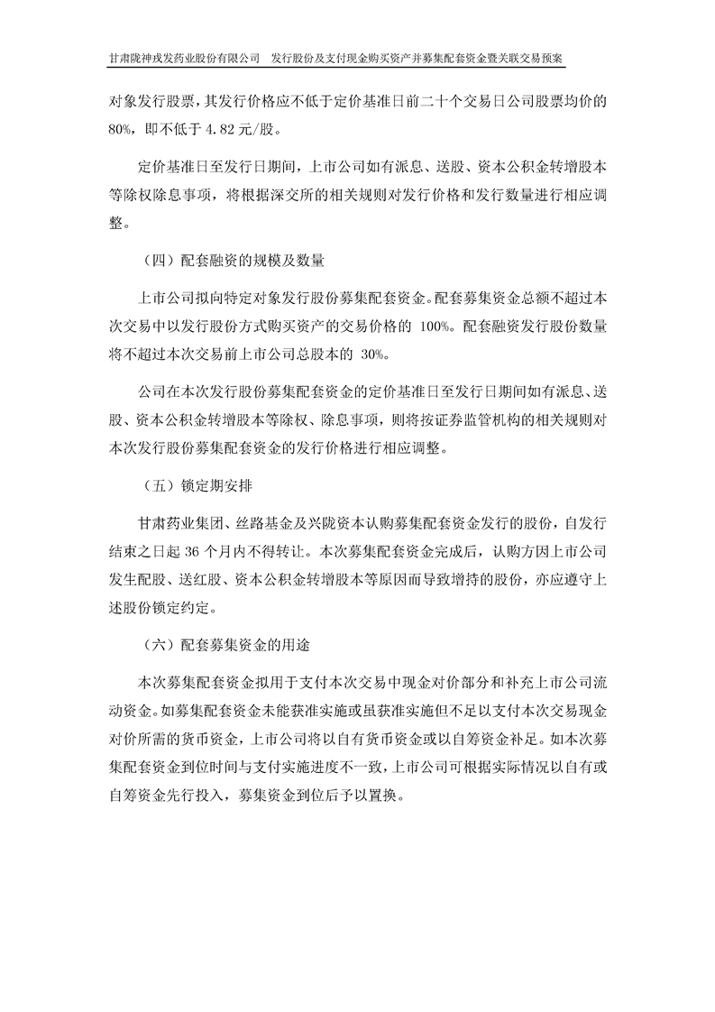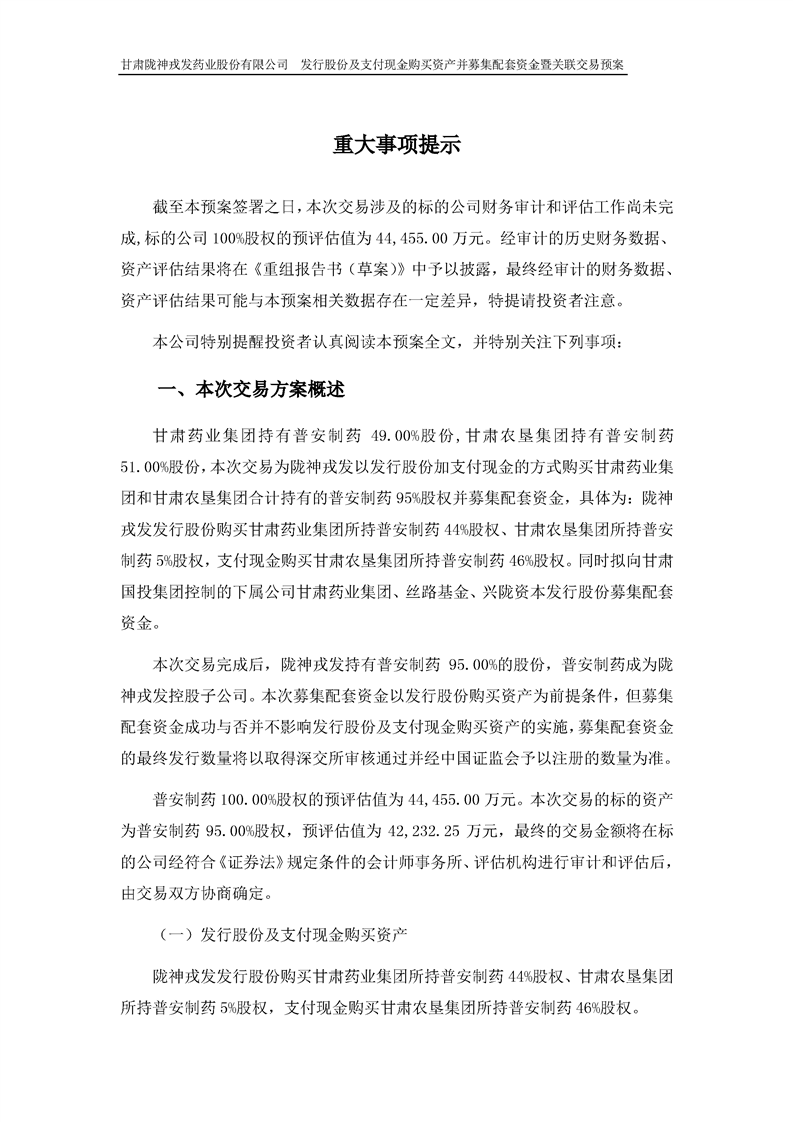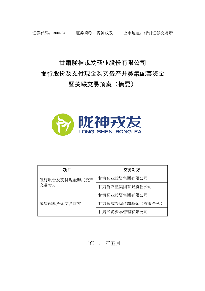 甘肅隴神戎發(fā)藥業(yè)股份有限公司發(fā)行股份及支付現(xiàn)金購買資產(chǎn)并募集配套資金暨關(guān)聯(lián)交易預(yù)案 (摘要)