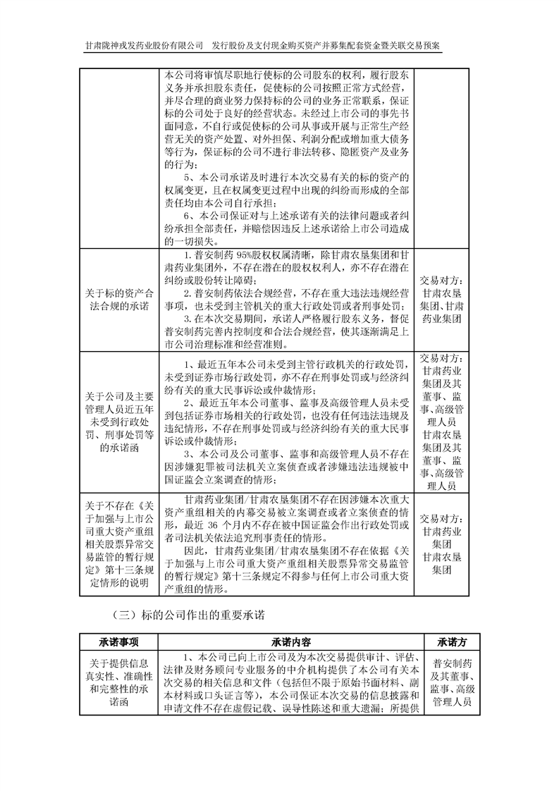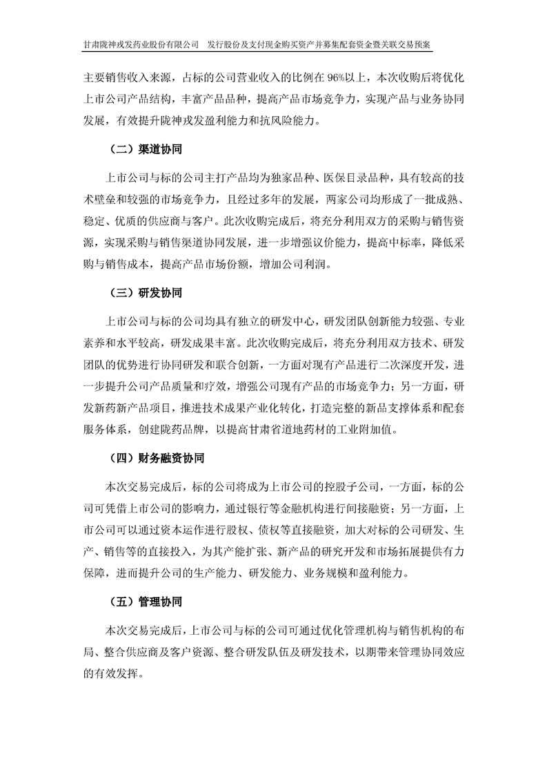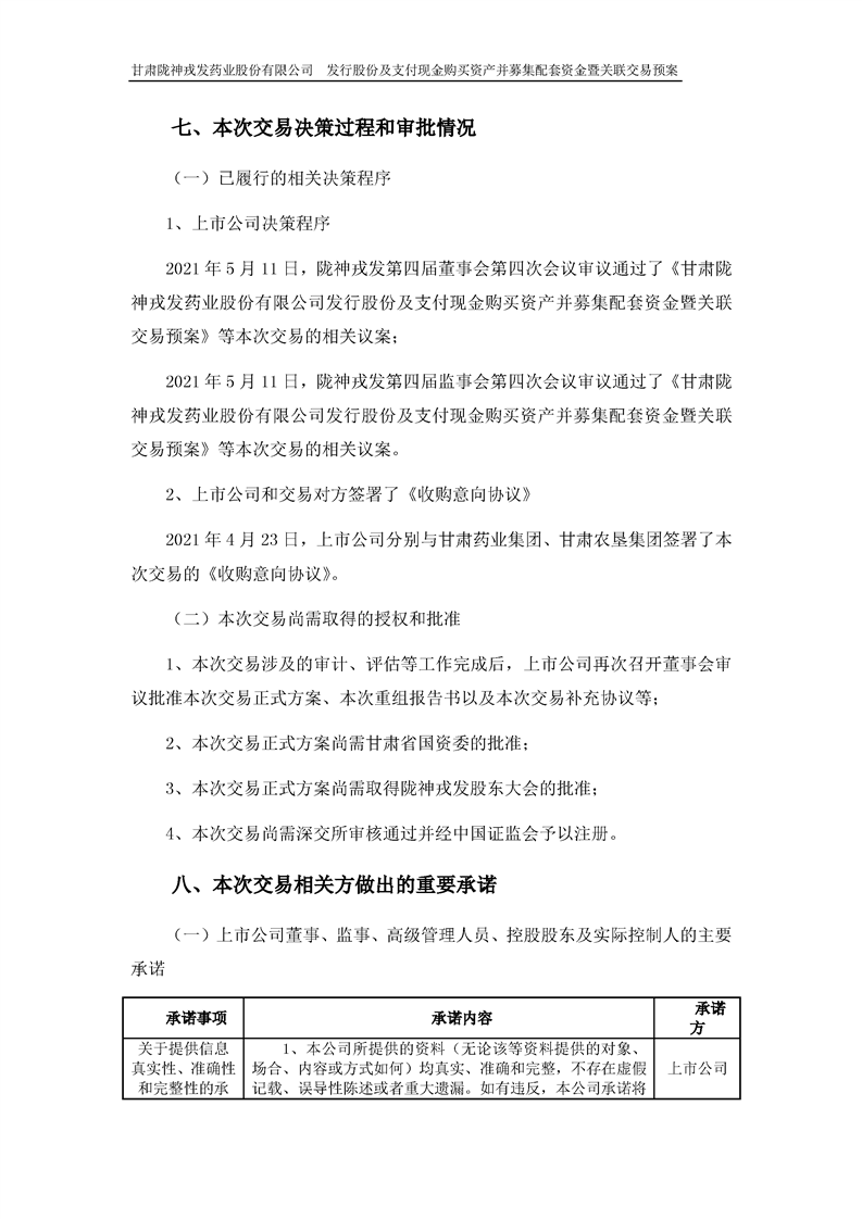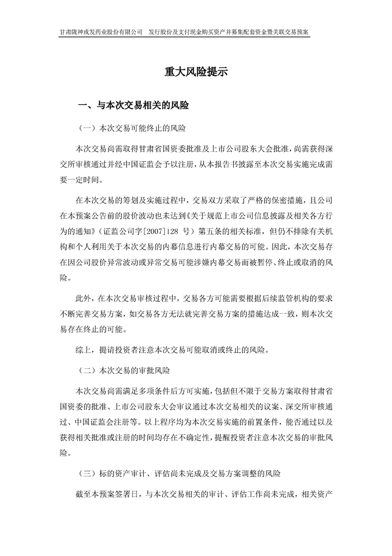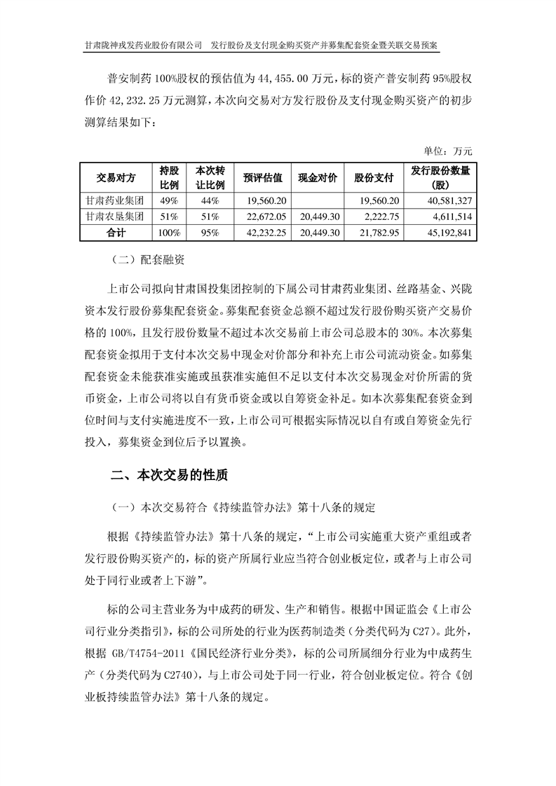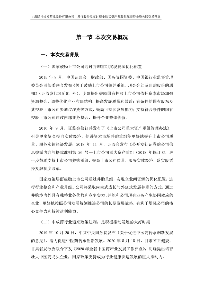甘肅隴神戎發(fā)藥業(yè)股份有限公司發(fā)行股份及支付現(xiàn)金購買資產(chǎn)并募集配套資金暨關(guān)聯(lián)交易預(yù)案 (摘要)