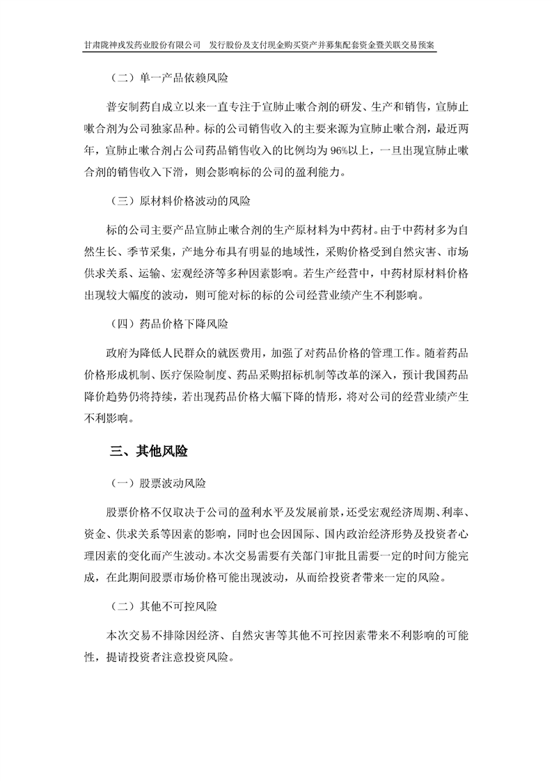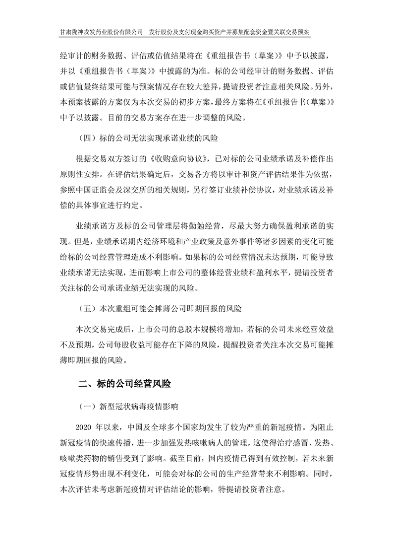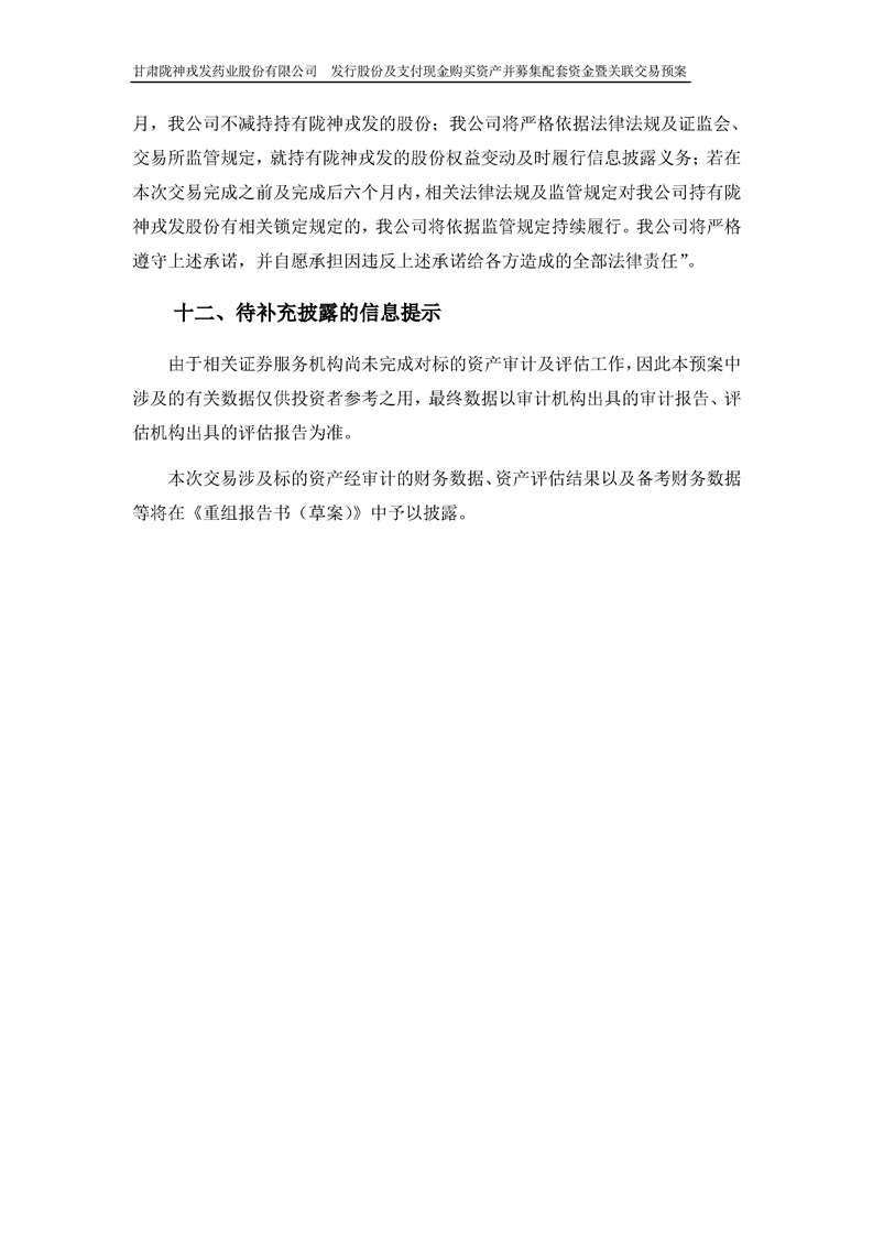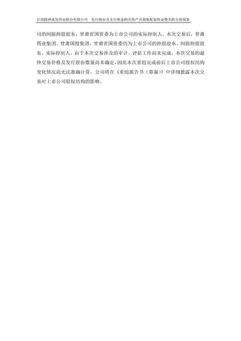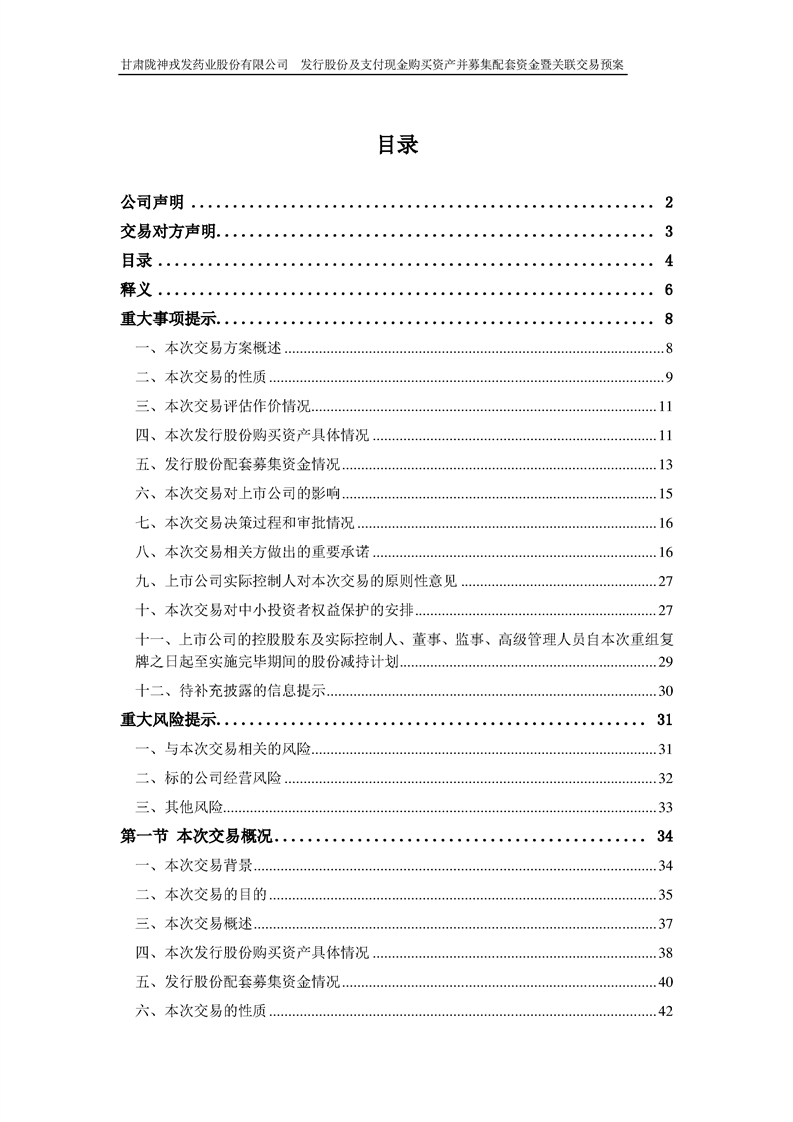 甘肅隴神戎發(fā)藥業(yè)股份有限公司發(fā)行股份及支付現(xiàn)金購買資產(chǎn)并募集配套資金暨關(guān)聯(lián)交易預(yù)案 (摘要)
