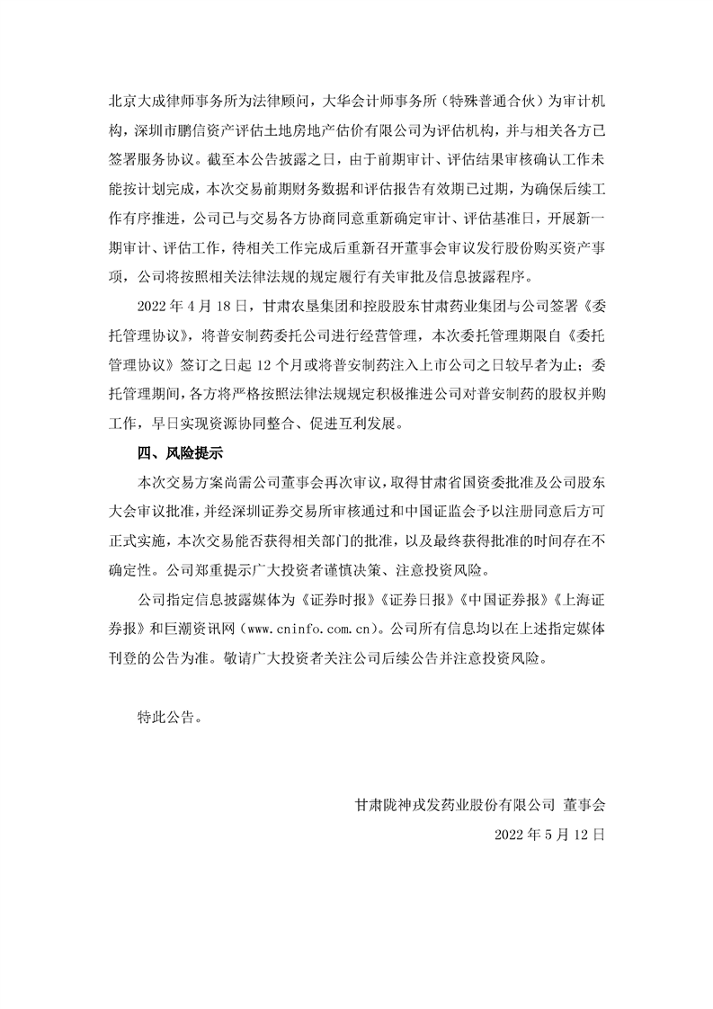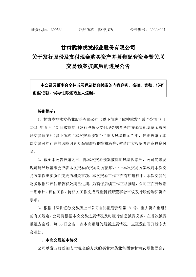 隴神戎發:關于發行股份及支付現金購買資產并募集配套資金暨關聯交易預案披露后的進展公告