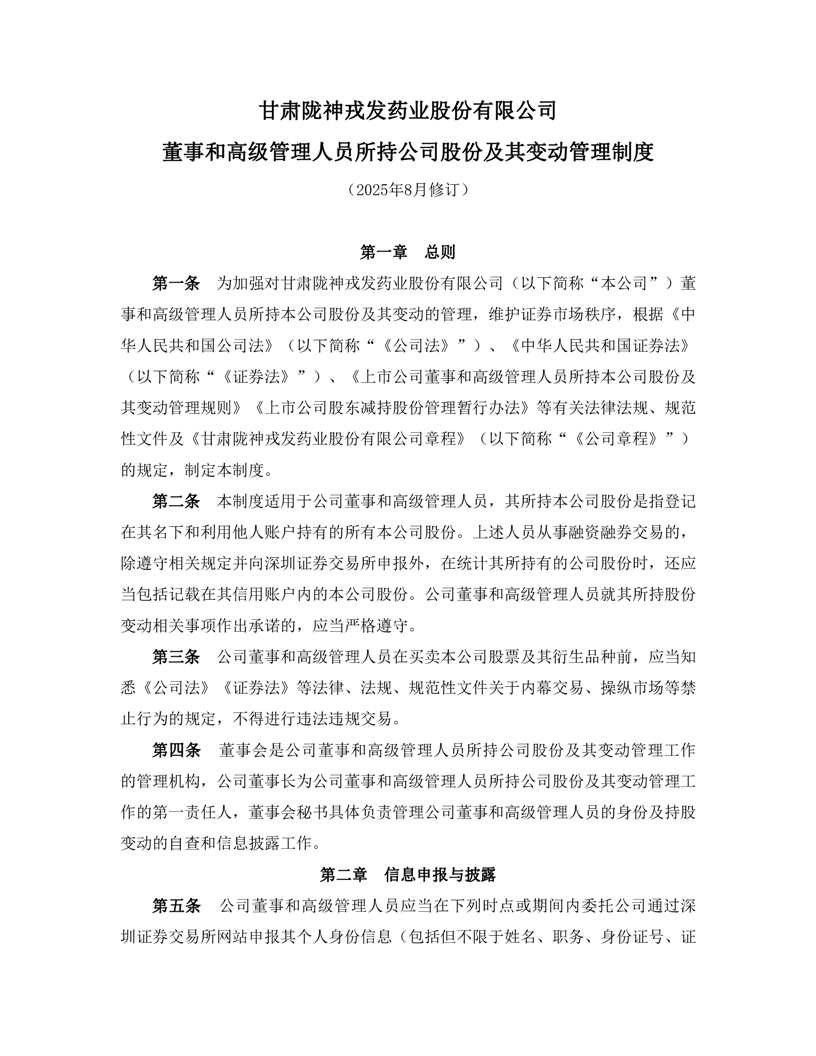 董事和高級管理人員所持公司股份及其變動管理制度(2025年8月)