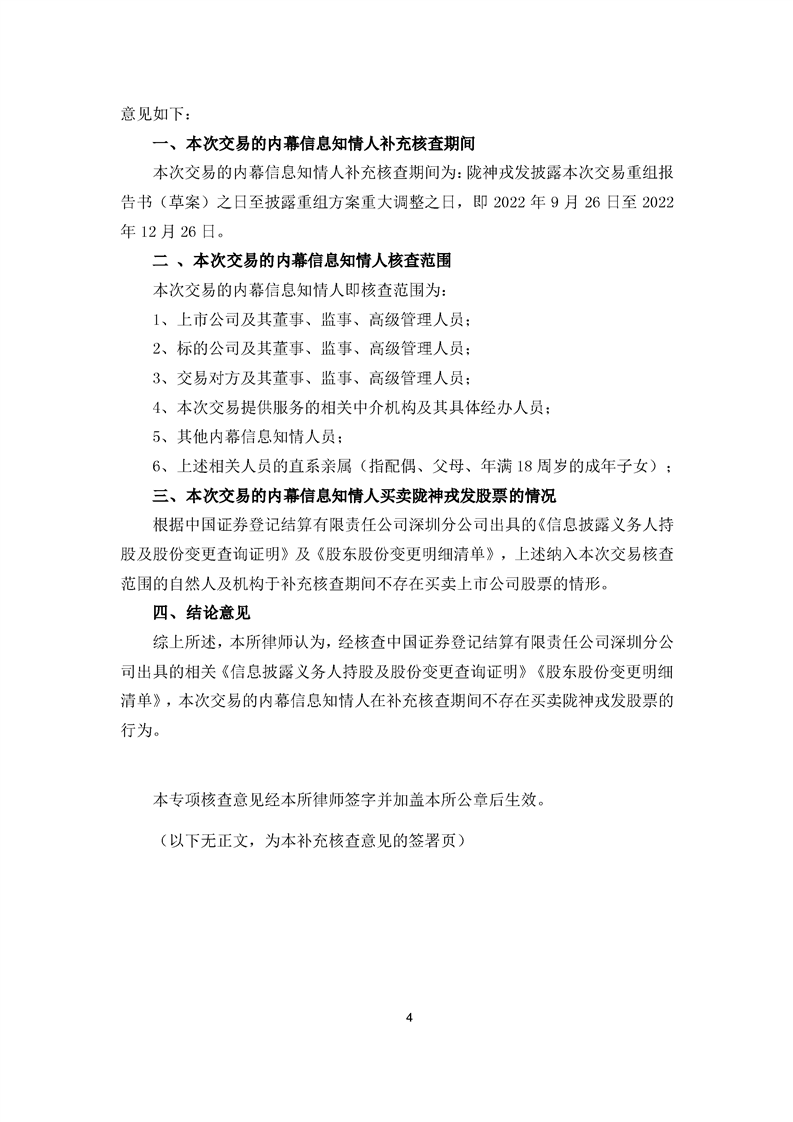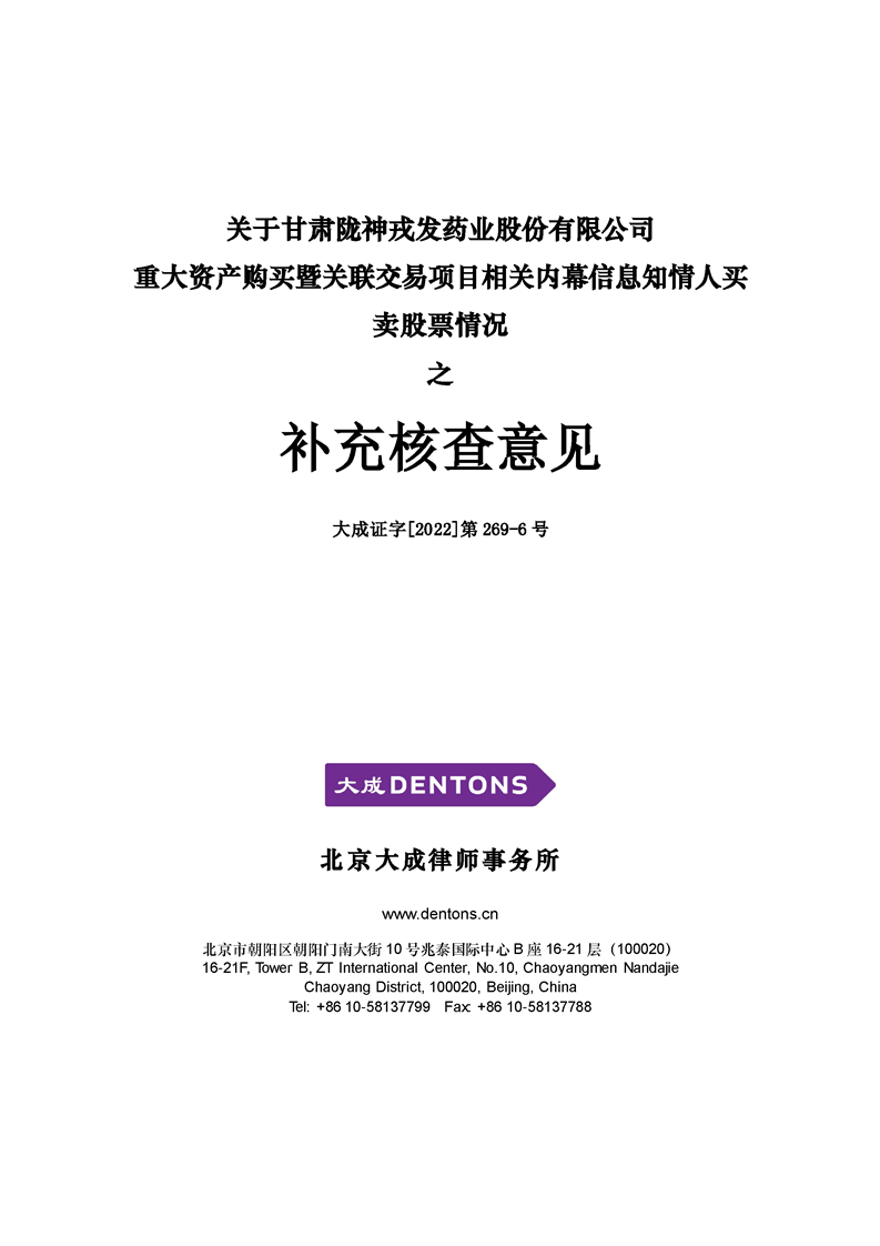 北京大成律師事務所關于本次重組內幕信息知情人買賣股票補充核查意見