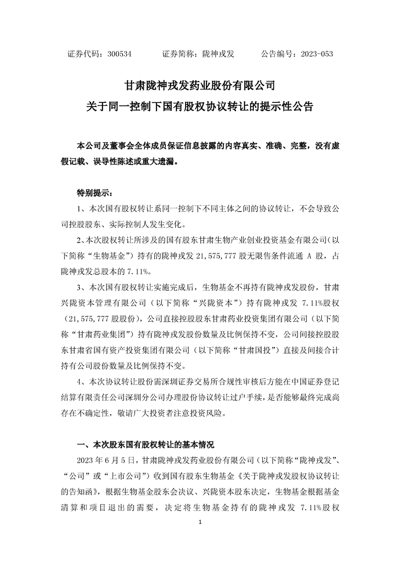 關于同一控制下國有股權協議轉讓的提示性公告