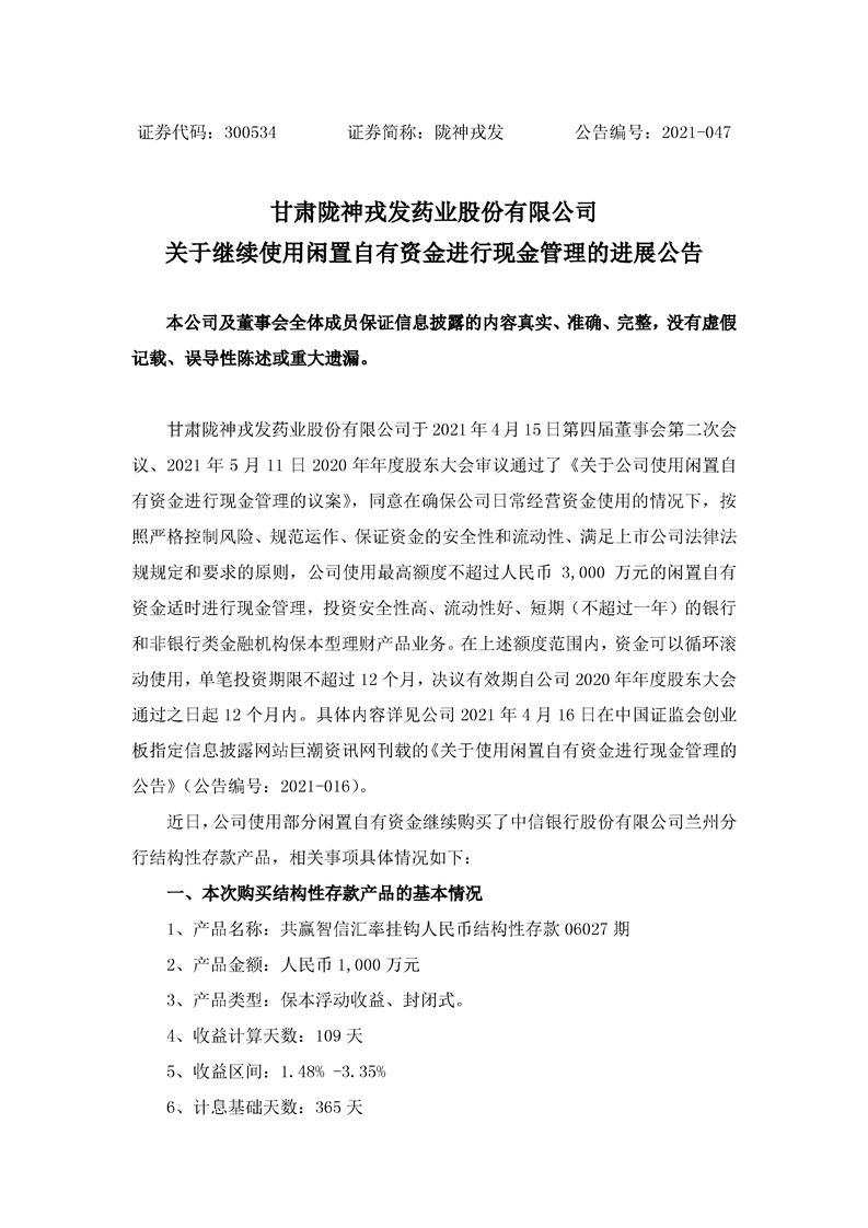 關(guān)于繼續(xù)使用閑置自有資金進(jìn)行現(xiàn)金管理的進(jìn)展公告