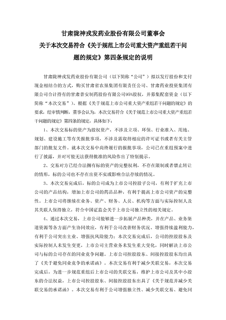 董事會關(guān)于本次交易符合《關(guān)于規(guī)范上市公司重大資產(chǎn)重組組若干問題的規(guī)定》第四條規(guī)定的說明