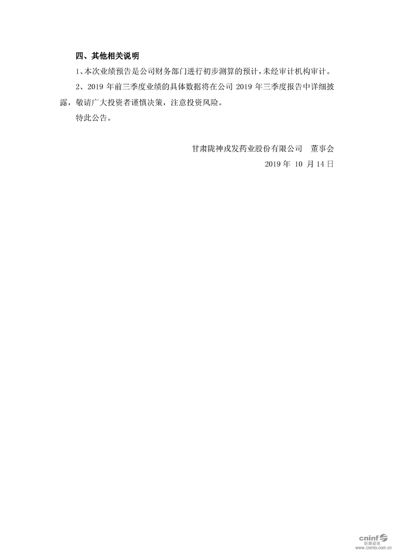 2019年前三季度業績預告