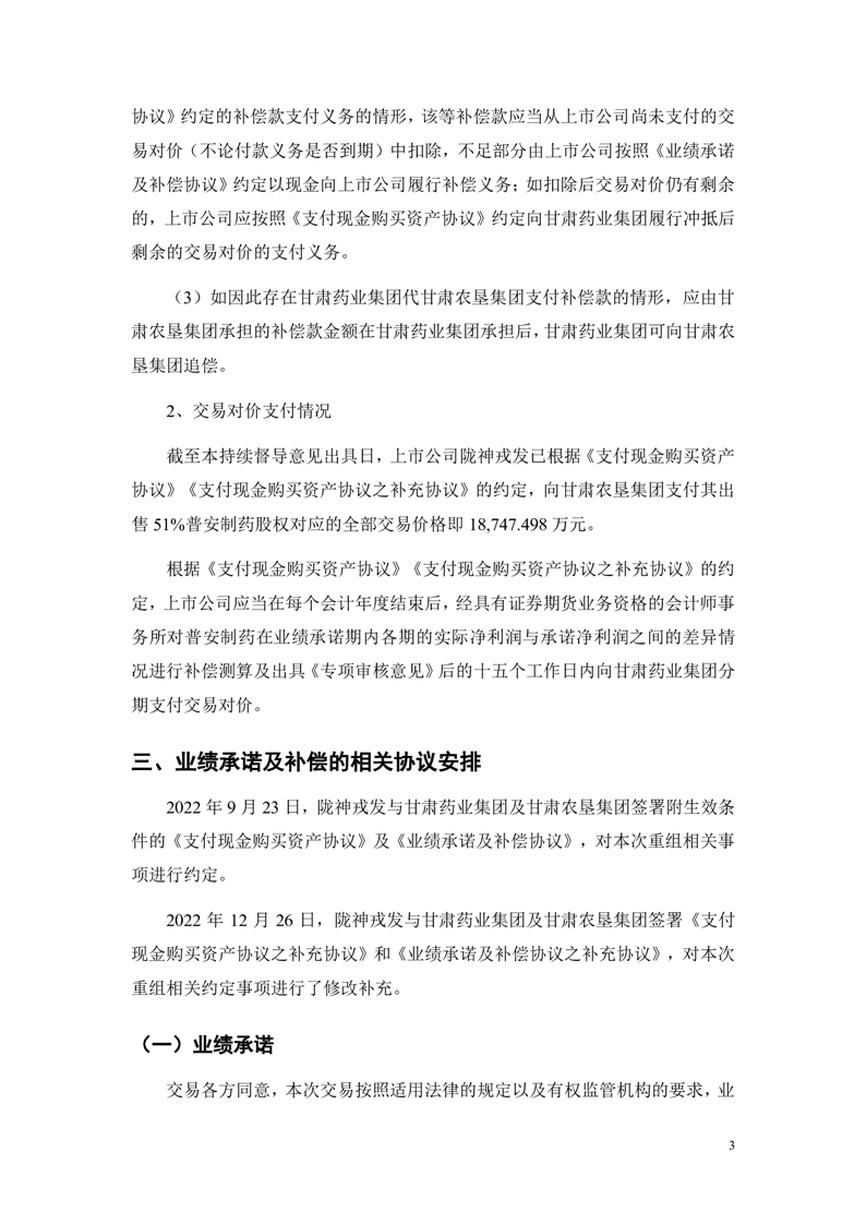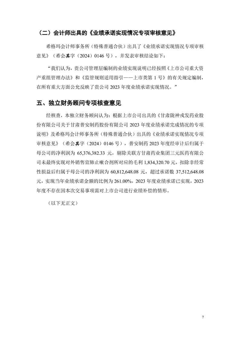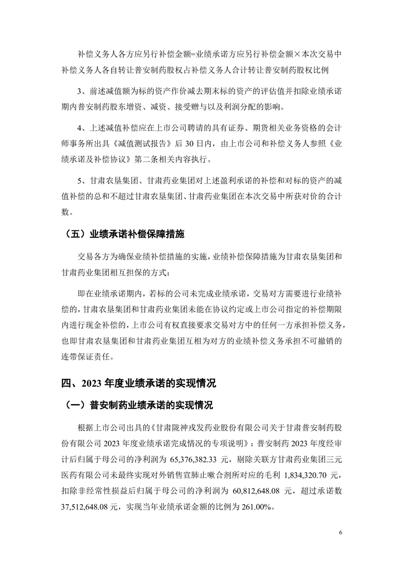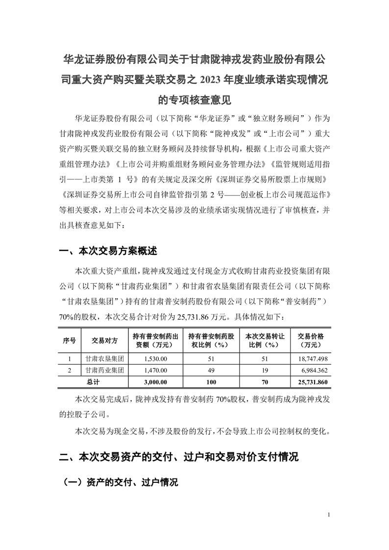 華龍證券股份有限公司關于甘肅隴神戎發藥業股份有限公司重大資產購買暨關聯交易之2023年度業績承諾實現情況的專項核查意見(更正后)