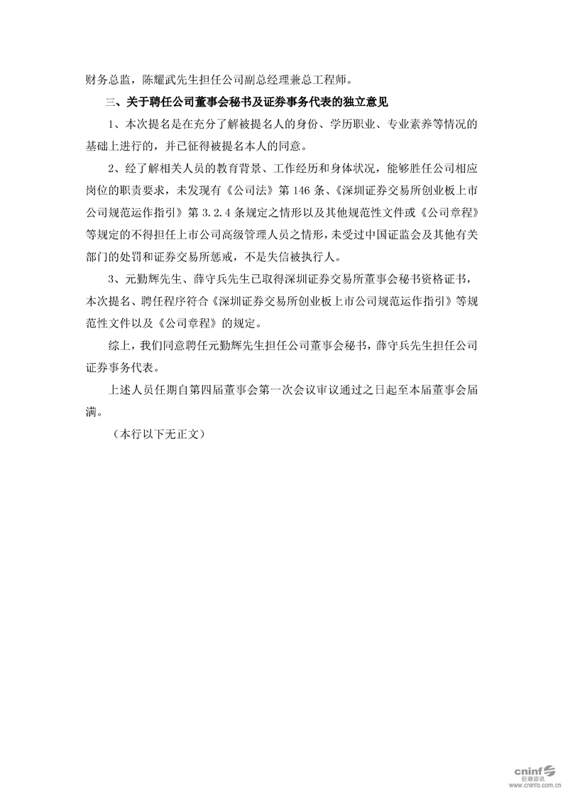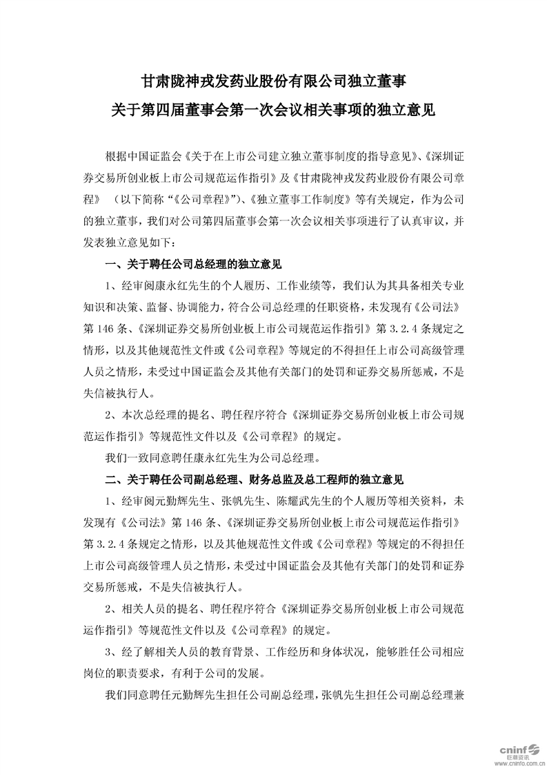 獨立董事關于第四屆董事會第一次會議相關事項的獨立意見