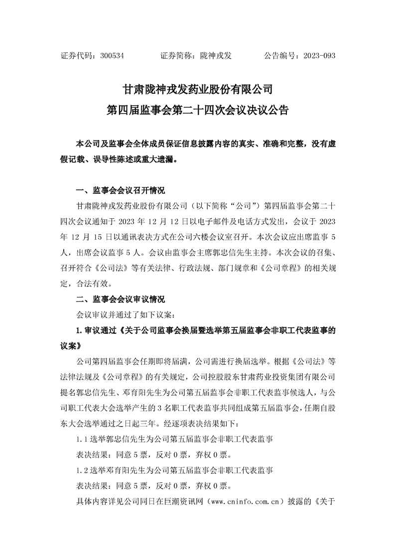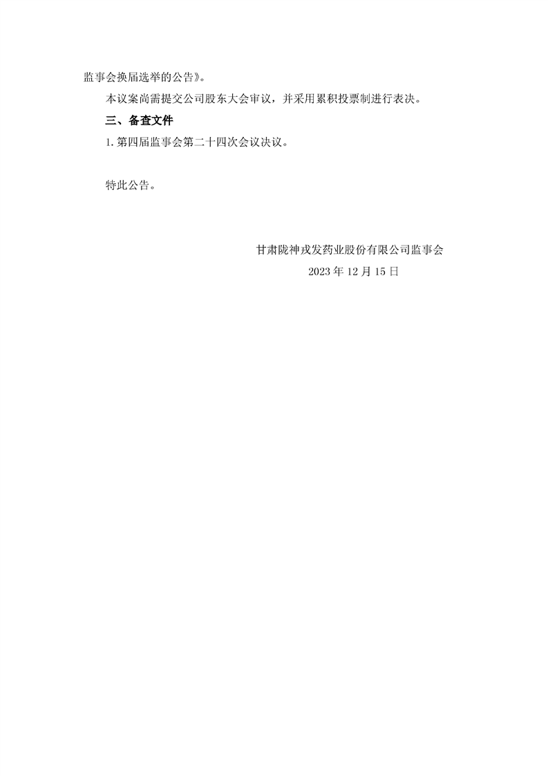 第四屆監事會第二十四次會議決議公告