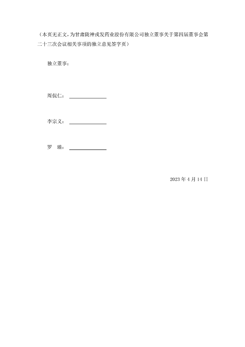 獨立董事關于第四屆董事會第二十三次會議相關事項的獨立意見